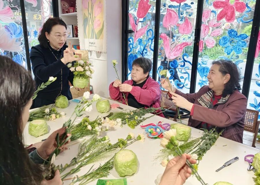 小屋里,“蔬菜插花课”很有仪式感,西凌幼儿园十二位胖胖的汉服“小花神”献花暖场,气氛热烈。昨天下午,西凌家宅路69号,零距离家园“半家店”,一场别样的街区插花活动,活色生香,令人捧腹!