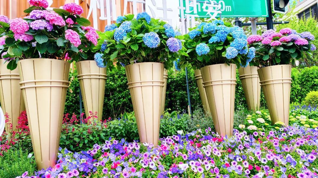 永源路街区(近南京西路西段),可从静安寺广场步行前往;极简花境,绿植与鲜花交织。