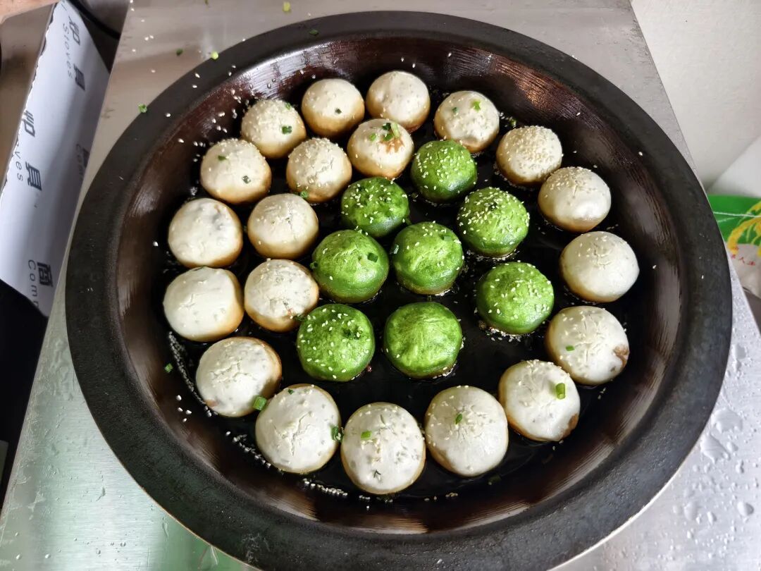上午10点30分,吴淞三营房小区居委会的为老助餐点位迎来了许多前来用餐的居民,他们以老年人为主,在助餐点窗口排队依次购买中午饭。午餐的品种还是挺丰富的,有基围虾,有糯米狮子头,有麻婆豆腐、茭白肉丝,还有一些清炒时蔬,厨房里的平底煎锅里面还有生煎包子,让人看了就觉得很有食欲。