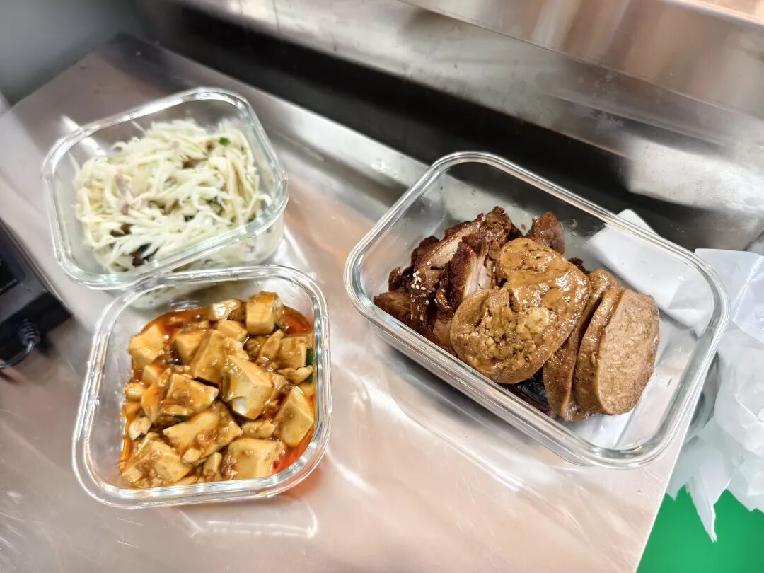 住在附近的经女士也来这里打卡,她这次采取了一个“部分购买”的方式,就是将自家厨房和助餐点菜品搭配起来的午餐模式。