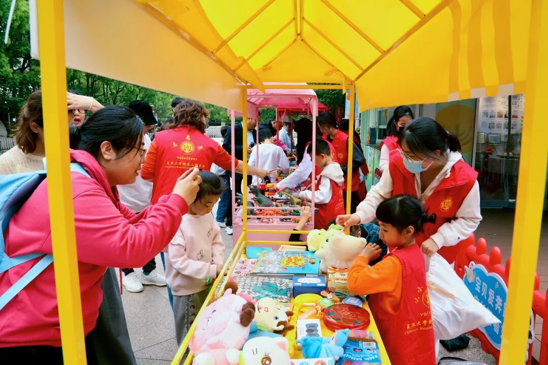 公益实践现场,志愿者们分成4组,各司其职、默契配合,爱心义卖集市温情满满、秩序井然。“小小引导员”驻守医院入口与义卖区域周边,贴心为患儿家属提供路线指引、答疑解惑;“秩序小卫士”穿梭于集市各处,细心维护现场选购秩序,营造安静舒适的活动环境;“公益小使者”化身义卖小掌柜,热情推介各类闲置物品,讲述背后的爱心故事;“暖心小伙伴”耐心引导路人扫码筹款,细致宣讲活动初衷与意义。