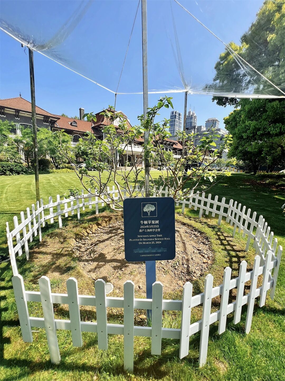 一个苹果从枝头轻轻坠落,启发了牛顿关于万有引力的思考,这株不平凡的苹果树,由此成为了科学探索与发现的全球性标志。2024年3月25日,这株承载着科学精神与智慧传承的“牛顿苹果树”从上海辰山植物园来到上海科学会堂,在大草坪上安了家。近日,在春风的温柔呵护和吹拂下,“牛顿苹果树”迎来了花期。