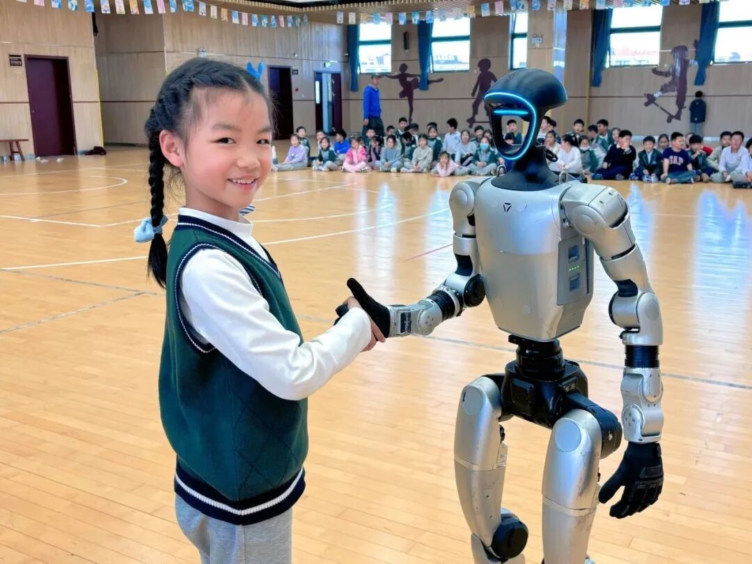 “哇,我要和它握手!”在闵行区诸翟学校科技节上,春晚爆红的宇树机器人灵活起舞,孩子们纷纷伸手互动。这一握,架起了百年老校与未来科技的桥梁。
