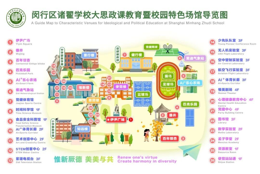 学校将十大特色场馆有机串联,形成三条“大思政课”实践教学精品线路——“紫堤文脉”红色基因传承线、“AI+科创”劳动智慧探索线、“航空航天梦想”未来人才培育线。学生们不出校门,就可以根据任务单进行研学:在伊尹广场触摸商朝贤相“治大国若烹小鲜”的智慧,于孟子学堂诵读“达则兼济天下”的经典;从倭井碑刻的爱国故事穿越到航空飞行实验室的星辰征途,让百年银杏的年轮与无人机编程的代码展开跨时空对话。