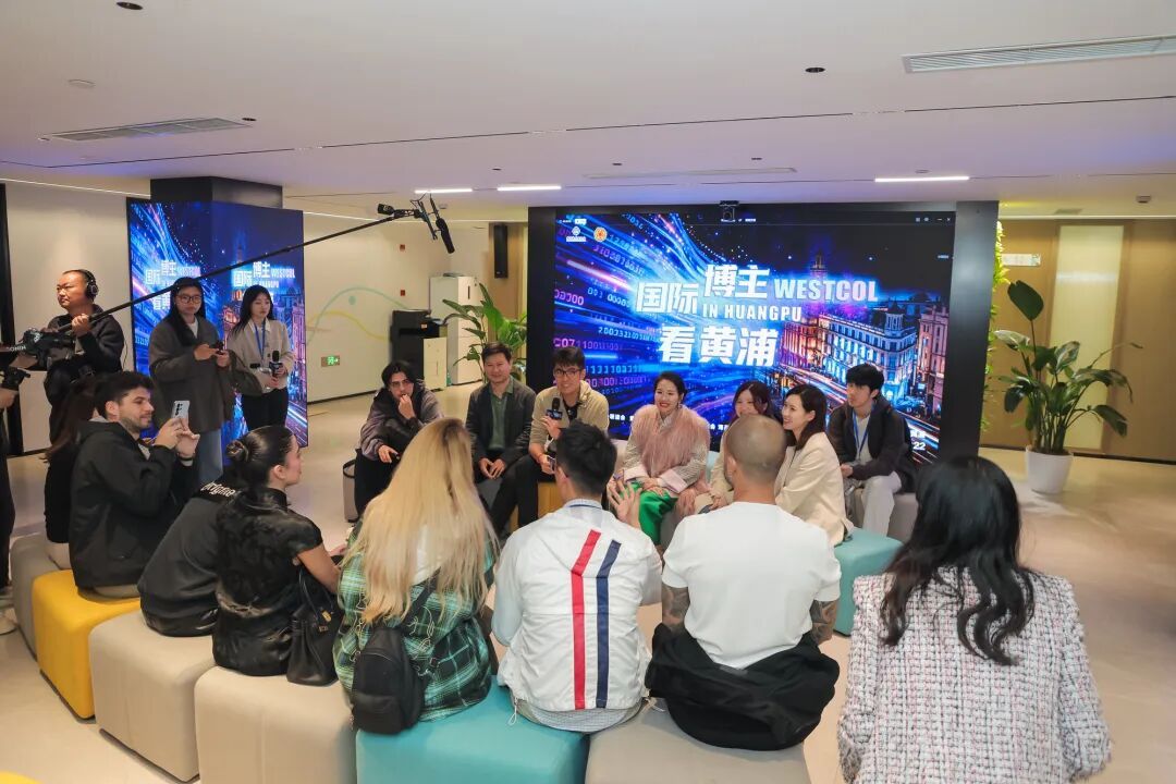 外滩FTC创作空间是当天的重头戏,这里是黄浦打造的“金融+科技+文化”多元创作高地。WestCOL参观了这栋地处外滩金融集聚带核心的楼宇,站在楼顶俯瞰浦江两岸——一边是上海的历史原点,一边是现代化的天际线。他还和一群已经扎根上海的国内外互联网博主围坐交流。