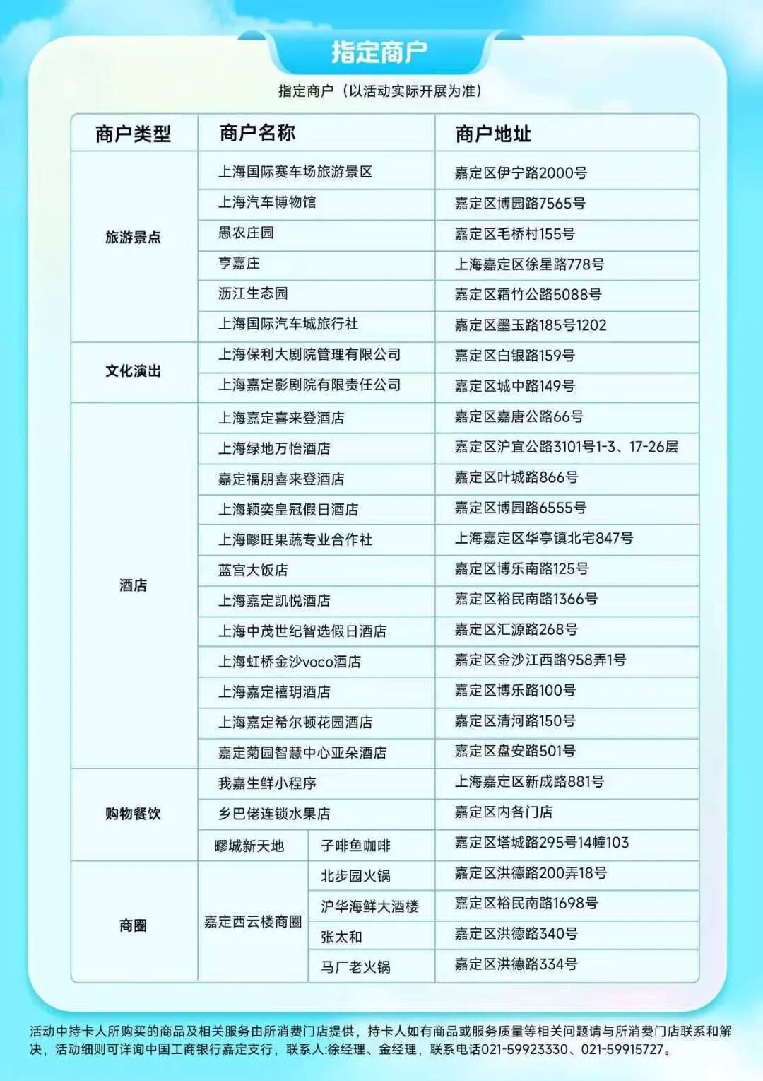 活动参与商户类型:旅游景点、文化演出、酒店、商圈、餐饮