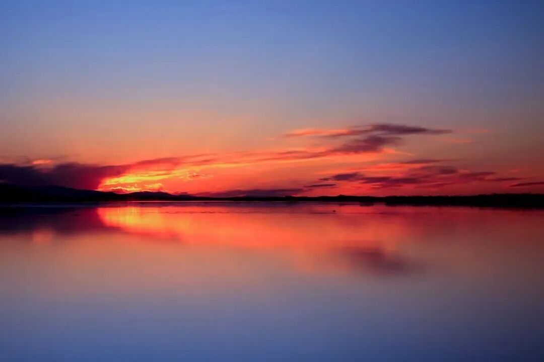 湖面倒映出来的蓝色
