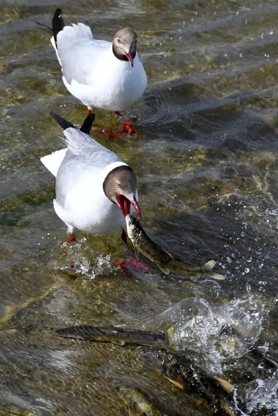 守候在此 上演“鱼鸟大战”