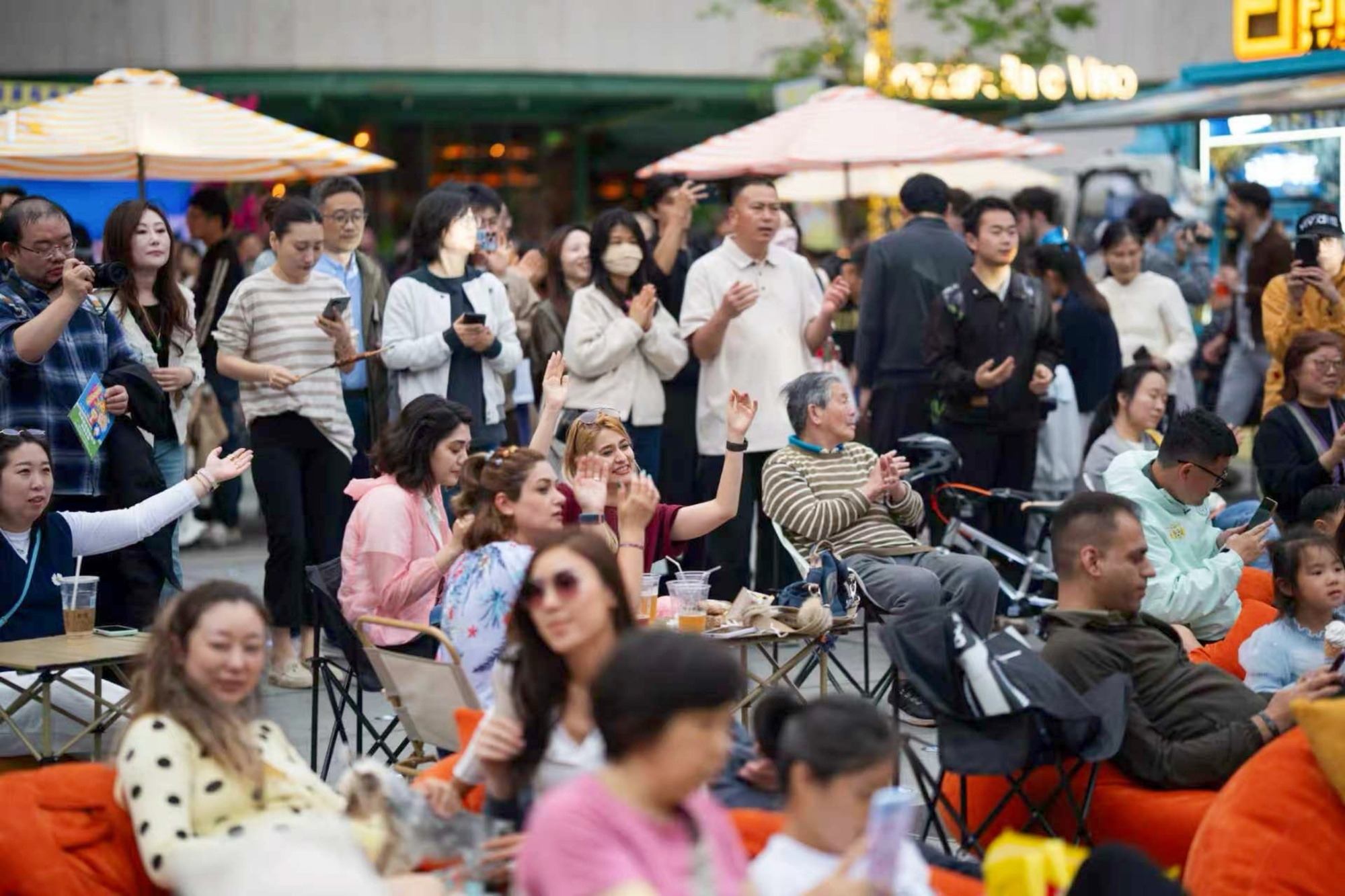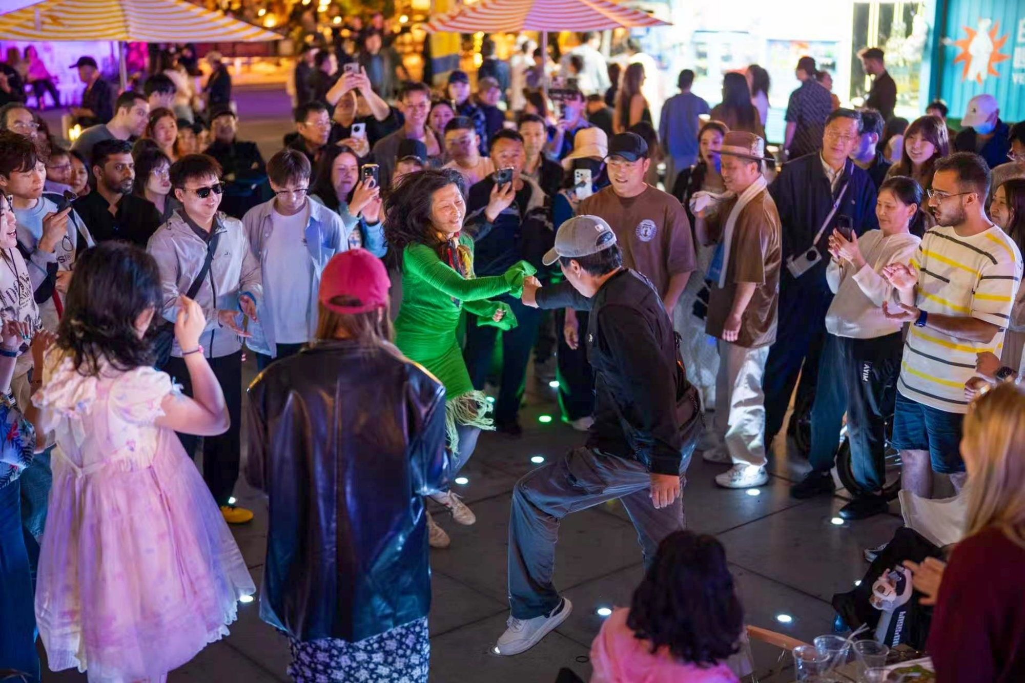美食节期间,中外乐队轮番登场,动感旋律与悠扬曲调交替上演,专业DJ现场打碟,气氛持续升温。不少市民游客手持美食美酒,跟随音乐即兴起舞,在黄浦江畔的夜色中释放激情。欢声笑语回荡在外滩上空,展现出上海这座城市的活力与温度。