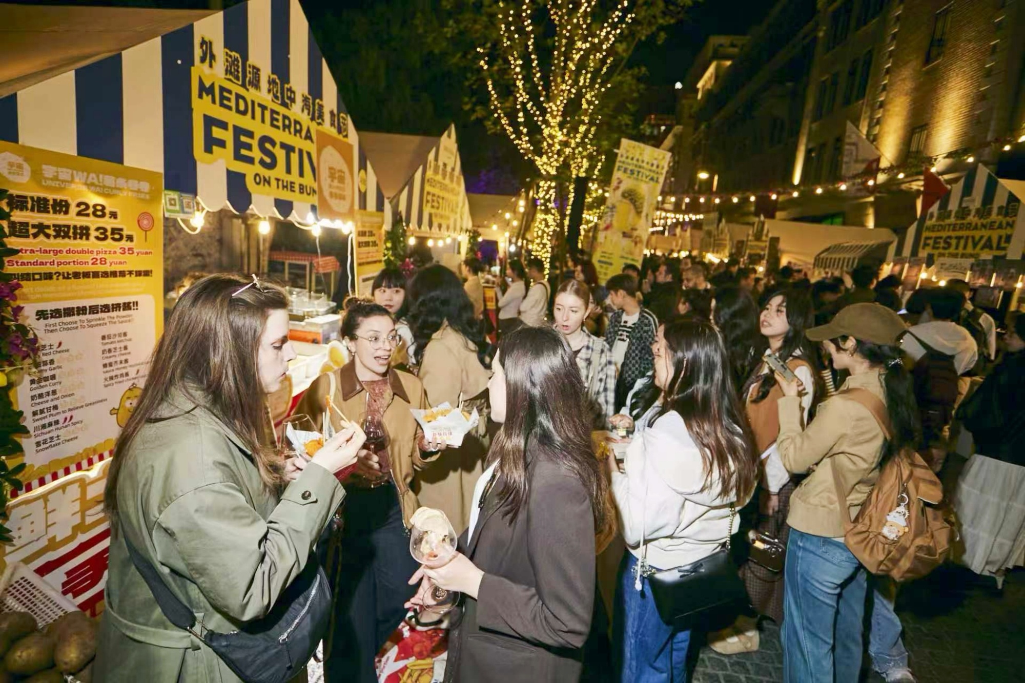 来自意大利、法国、德国、塞尔维亚、土耳其、西班牙等多个地中海沿岸国家的特色美食与美酒集中亮相。除了地道的风味小吃、传统佳肴,现场还融入了高品质手工文创元素,让消费者在品味异国风味的同时,也能淘到独具匠心的手作好物。不少摊位前大排长龙,市民游客边逛边吃,烟火气十足。