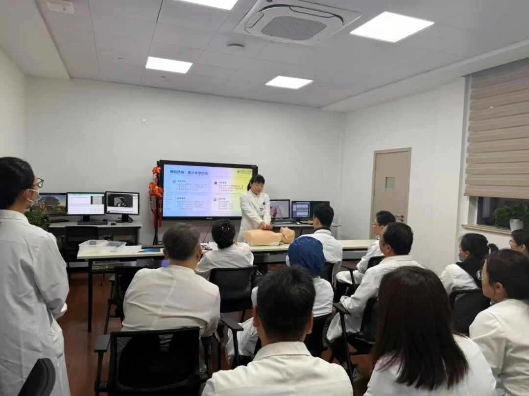 培训中,王蒙蒙聚焦影像检查场景高频突发危急情况,分模块开展专项教学。重点围绕“过敏性休克、迷走神经反射与低血糖样反应”三大核心急症,详细讲解各类急症发病诱因、典型临床表现、快速鉴别诊断方法以及现场急救规范流程、用药原则和处置注意事项,让全体参训人员清晰地掌握不同急症的区分要点和施救关键步骤。同时,针对临床急救必备核心技能,专门开展心肺复苏胸外按压专项实操教学,规范操作标准、纠正常见操作误区,夯实全员基础急救实操能力,确保突发紧急情况时能够科学施救、有效施救。