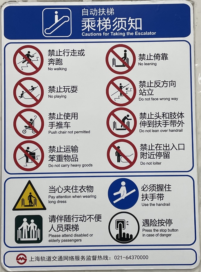 《上海市轨道交通乘客守则》中规定,禁止在运行的自动扶梯上逆行、推挤、嬉戏打闹;上海地铁自动扶梯乘梯须知中也明确禁止在扶梯上行走或奔跑,要求乘梯时握好扶手。若违反相关安全须知,在扶梯上行走或奔跑造成他人人身伤害或财产损失的,行为人应当依法承担相应侵权责任。 遵守乘梯规则、文明安全出行,既是对自身和他人安全负责,也是践行文明友善的社会主义核心价值观、共建有序公共环境的体现。人人自觉规范乘梯行为,共同维护安全顺畅的公共交通秩序,才能让城市出行更安心、更和谐。