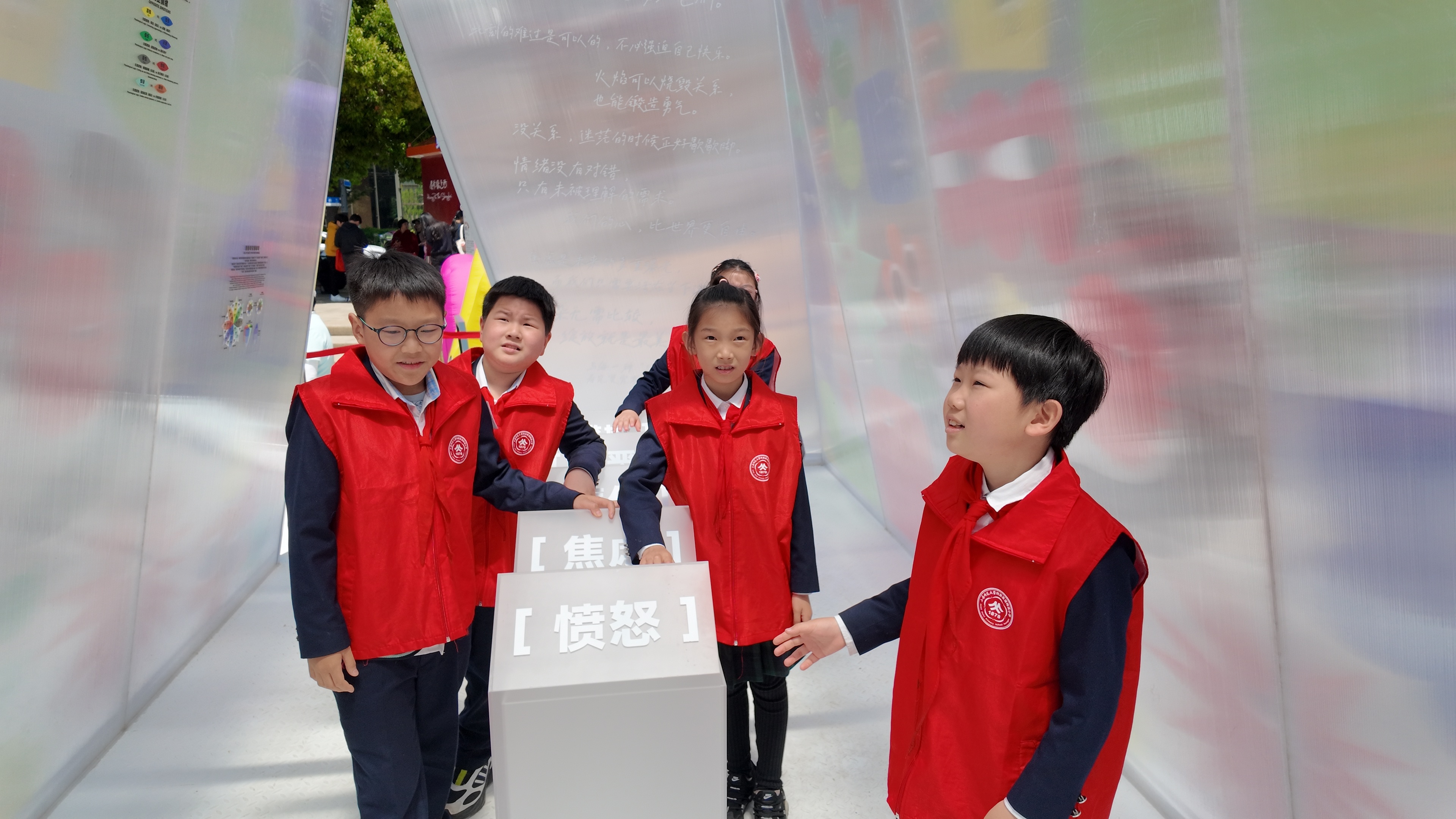 三年级6班的林颢翰同学,在打卡过程中对“情绪花园”和“任意门”两个装置情有独钟,满心欢喜地规划着回到学校后,与同学们分享这份春日里的惊喜与收获。“情绪花园特别有意思,不同颜色的花对应着不同的情绪,鲜红的月季藏着愤怒,柔和的粉白能抚平烦躁,还有可以写下心事的情绪盒子,让我学会接纳自己的每一种心情。”他眼里闪着光,兴奋地介绍道,“而任意门就像哆啦A梦的魔法门,四道门分别连接着过去、现在与未来,站在门前,仿佛能穿越时光,遇见不一样的美好,这个创意太神奇了!”