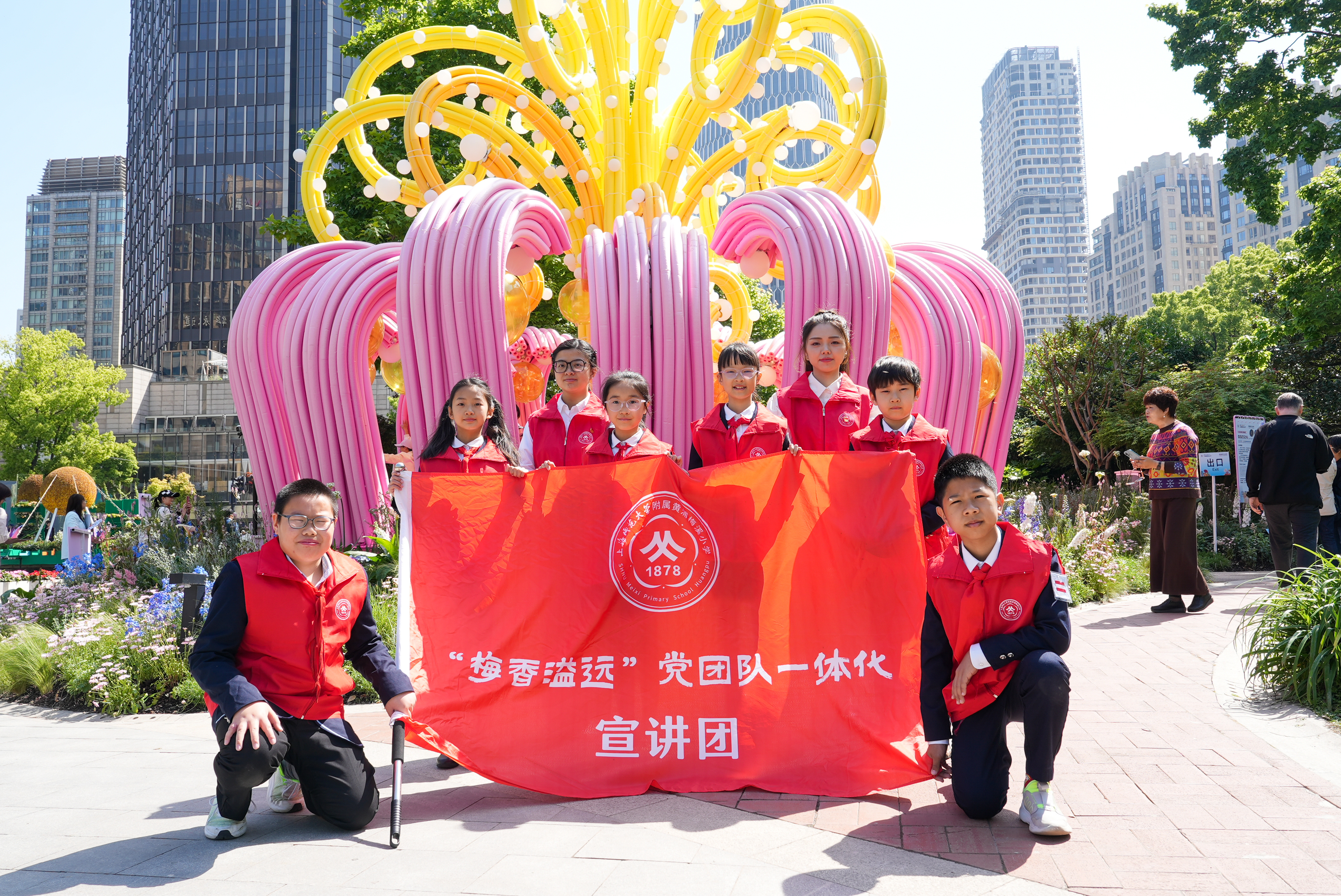 今天阳光格外慷慨,将上海新天地的每一寸花境都镀上了温暖的金边。梅溪小学的师生们踏着暖阳,赴约新天地的花卉节,一个个打卡小队,在花卉节的美景中沉浸式学习,与自然知识和美好春光双向奔赴。