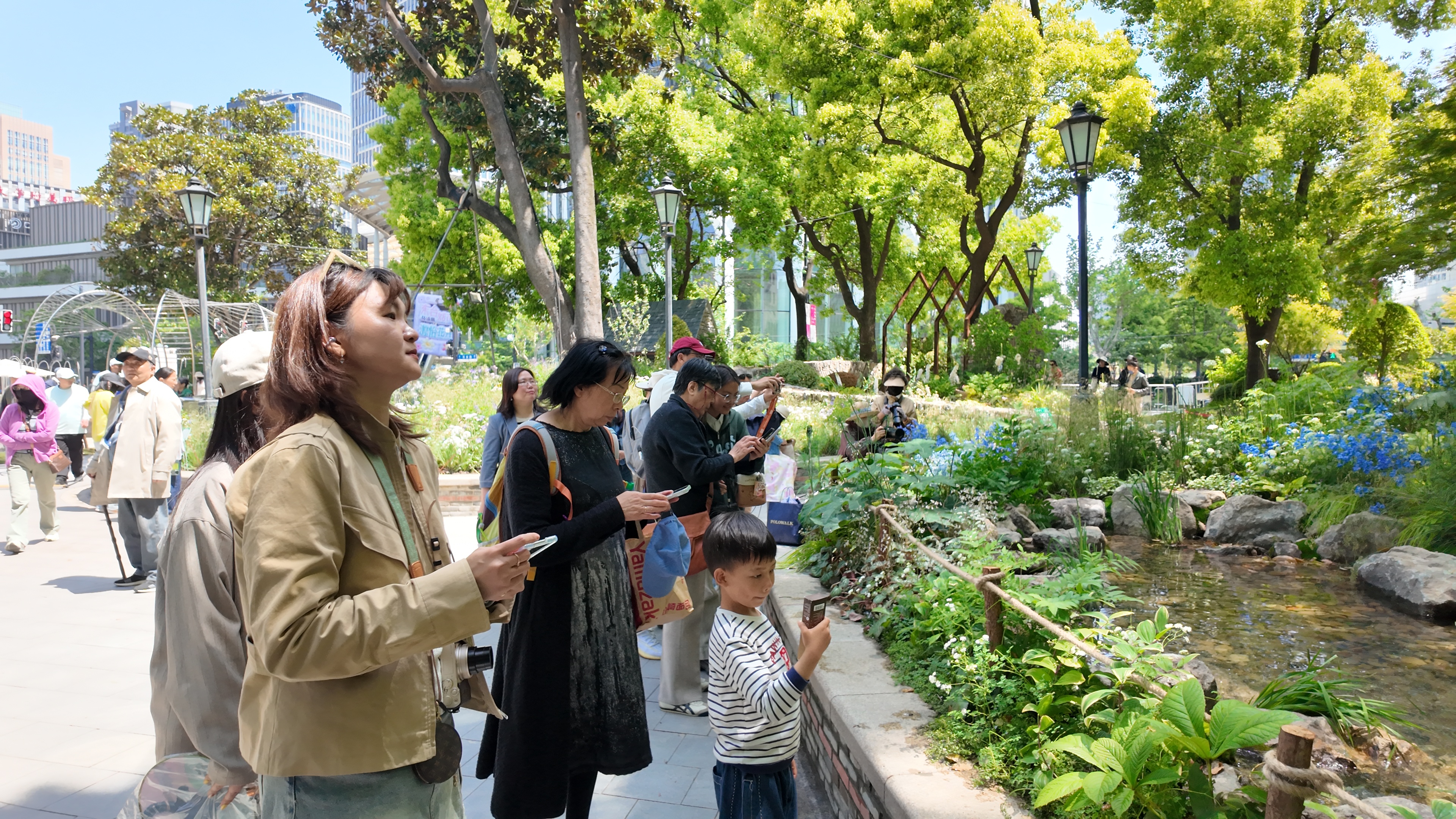 连续数日的阴雨天气过后,上海终于迎来了久违的晴朗。在这阳光灿烂的日子里,2026上海国际花卉节黄浦城市主会场迎来了又一波人流高峰。现场热闹非凡,每一处精心打造的花卉作品旁,都围满了兴致勃勃的市民,他们纷纷拿起手机或相机拍照打卡,其中更不乏专业的摄影爱好者,趁着这难得的好天气,赶来现场捕捉花卉的绝美瞬间,拍摄令人惊艳的“大片”。