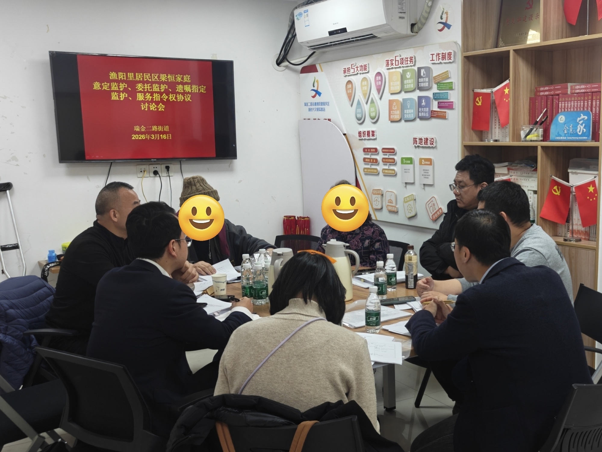 图:渔阳里居民区多次召开专题讨论会,请张老伯及其意定监护人王女士参加,了解协议进展情况