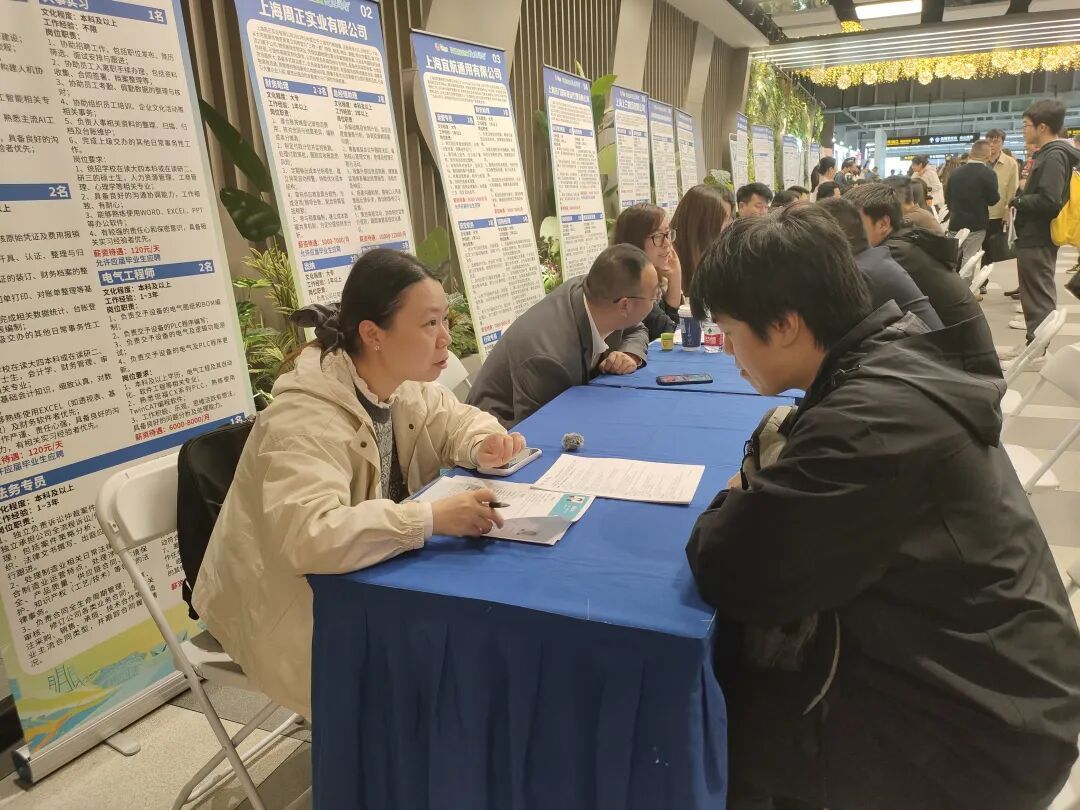 “今天求职者的质量和数量都远超我的预期!才半小时,就收到这么多理想的求职简历。”在宠聚落(上海)宠物有限公司的展位前,负责人胡怡乐面露惊喜。而她身边,一只名为“墨宝”的巨型贵宾犬成了现场最特别的“招聘官”,吸引诸多求职者驻足。 4月24日下午,民盟企业家“走进闵行”暨2026年春季招聘专场活动在闵行天荟广场举行,89家来自民盟上海企业家联合会的企业带来319个岗位、1024个就业机会,涵盖物流贸易、健康管理、绿色能源等多行业。