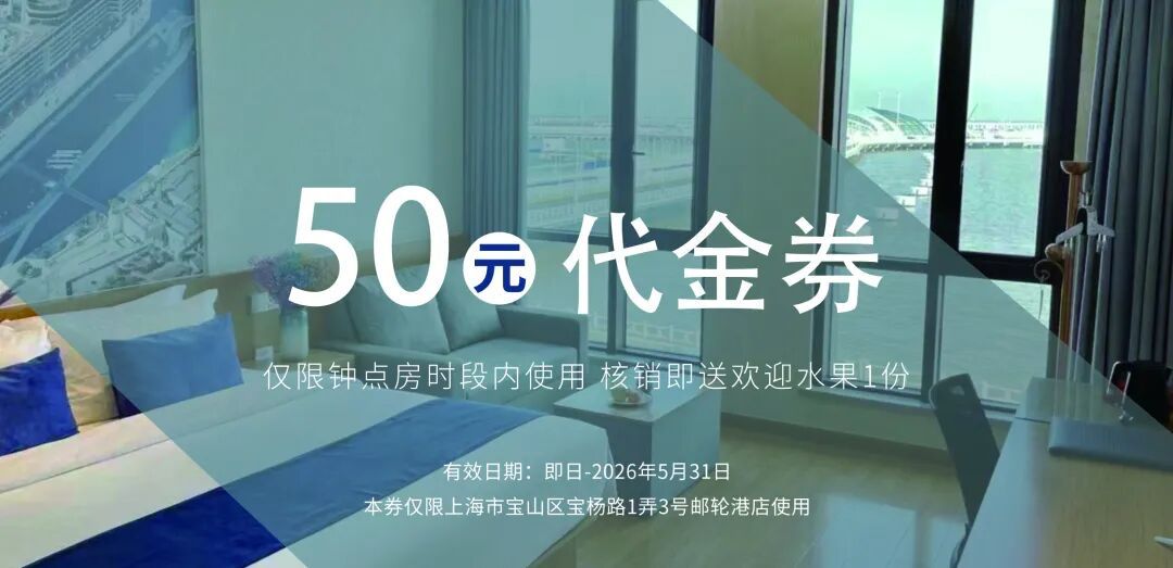 1.仅限上海市宝山区宝杨路1弄3号邮轮港店钟点房使用,在门市价基础上立减50元,核销即赠欢迎水果一份。