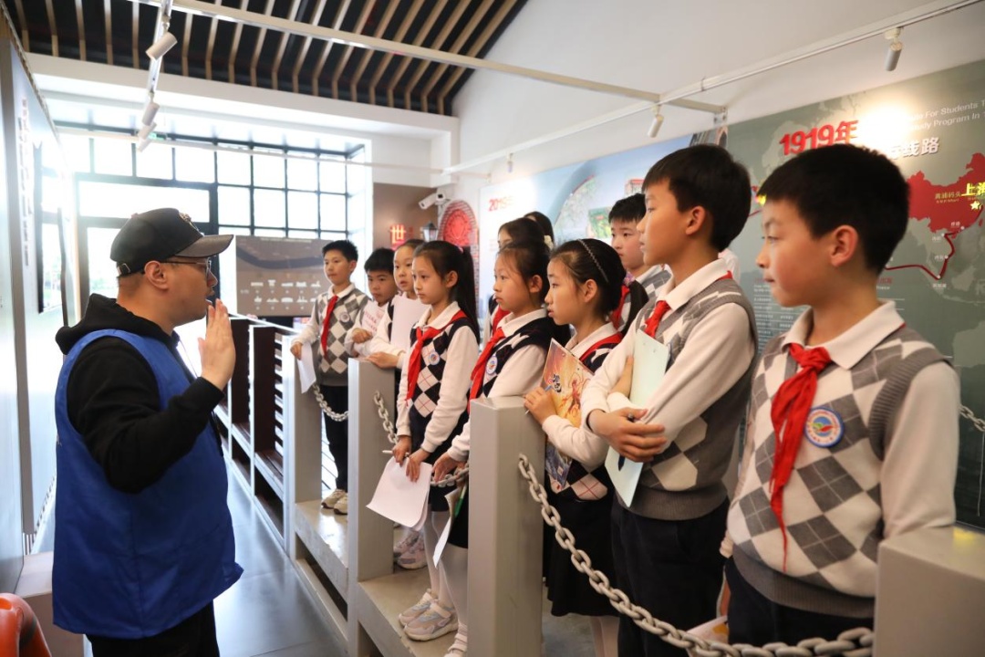 在传统认知中,阅读往往是一项静态的案头活动。但在杨浦这片拥有“三个百年”深厚历史底蕴的土地上,教育者们找到了让文字“立”起来的支点。学校将阅读课堂直接搬到了初心启航展厅和滨江书院,一路走、一路听、一路画、一路记。