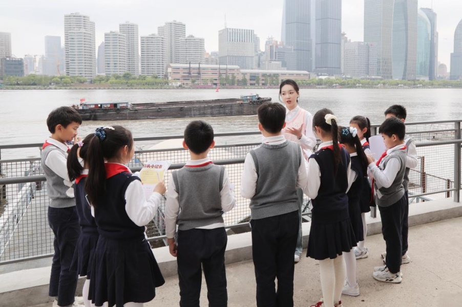 在杨浦,阅读不仅是捧起一本书,更是一场丈量红色文脉的行走。当“书香杨浦”的浓郁氛围融入“行走的思政课”,历史便有了具象的温度。近日,打一小学教育集团打破传统课堂的围墙,将阅读实践搬到了百年前革命先辈远航的秦皇岛路码头。在这里,纸面上的文字化作黄浦江畔的真实回响,校家社同频共振,共同探索出一条以阅读润心、以实景铸魂的育人新路。
