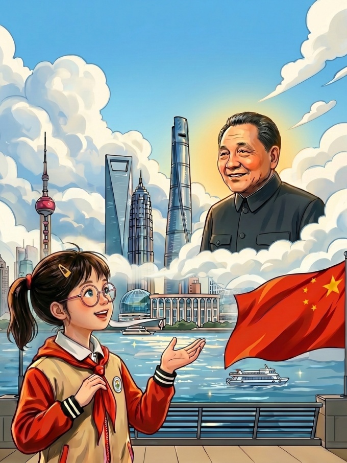 更令人耳目一新的是,这堂“行走的思政课”还插上了科技的翅膀。在老师的引导下,孩子们依托AI文生图技术,敲击键盘输入自己从革命故事中提取的关键场景与阅读感悟。“指令”下达几秒钟后,屏幕上跃然而出一幅幅跨越时空的“合影”——戴着红领巾的少先队员与目光如炬的革命伟人在云端并肩,注视着如今繁华的盛世中国。