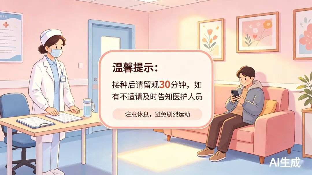 极少数人可能发生急性过敏反应,较严重的情况多在接种后半小时内发生。留观30分钟可以确保发生意外时得到及时救治。