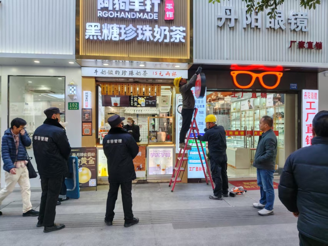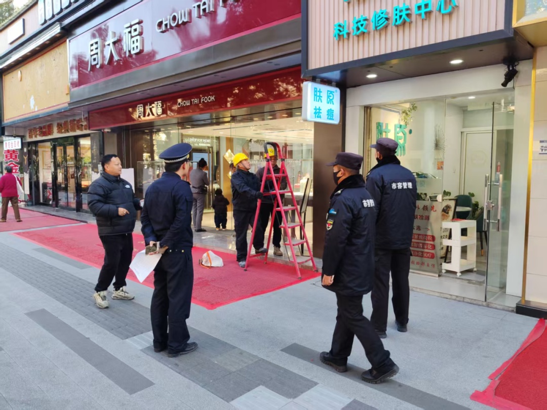 例如针对竞争引发的违规店招问题,定期组织商户交流座谈,邀请城管、城运、市场所等部门现场讲解安全隐患与管理规定,搭建良性互动平台,摒弃“不多设牌就没客流”的误区,鼓励商户立足特色错位经营、抱团引流,实现共赢发展;针对新店主政策不熟、流程不清晰等问题,联合市场监管部门开展政策宣讲与实操指导,详细解读营业执照、经营许可、店招审批等办理流程,帮助商户明晰要求、规范办理。街区全程跟进落实成效,确保诉求件件有回应、事事有着落,让商户遇事有方向、咨询有渠道、办事有保障,从源头消除违规搭建店招等各类隐患问题。
