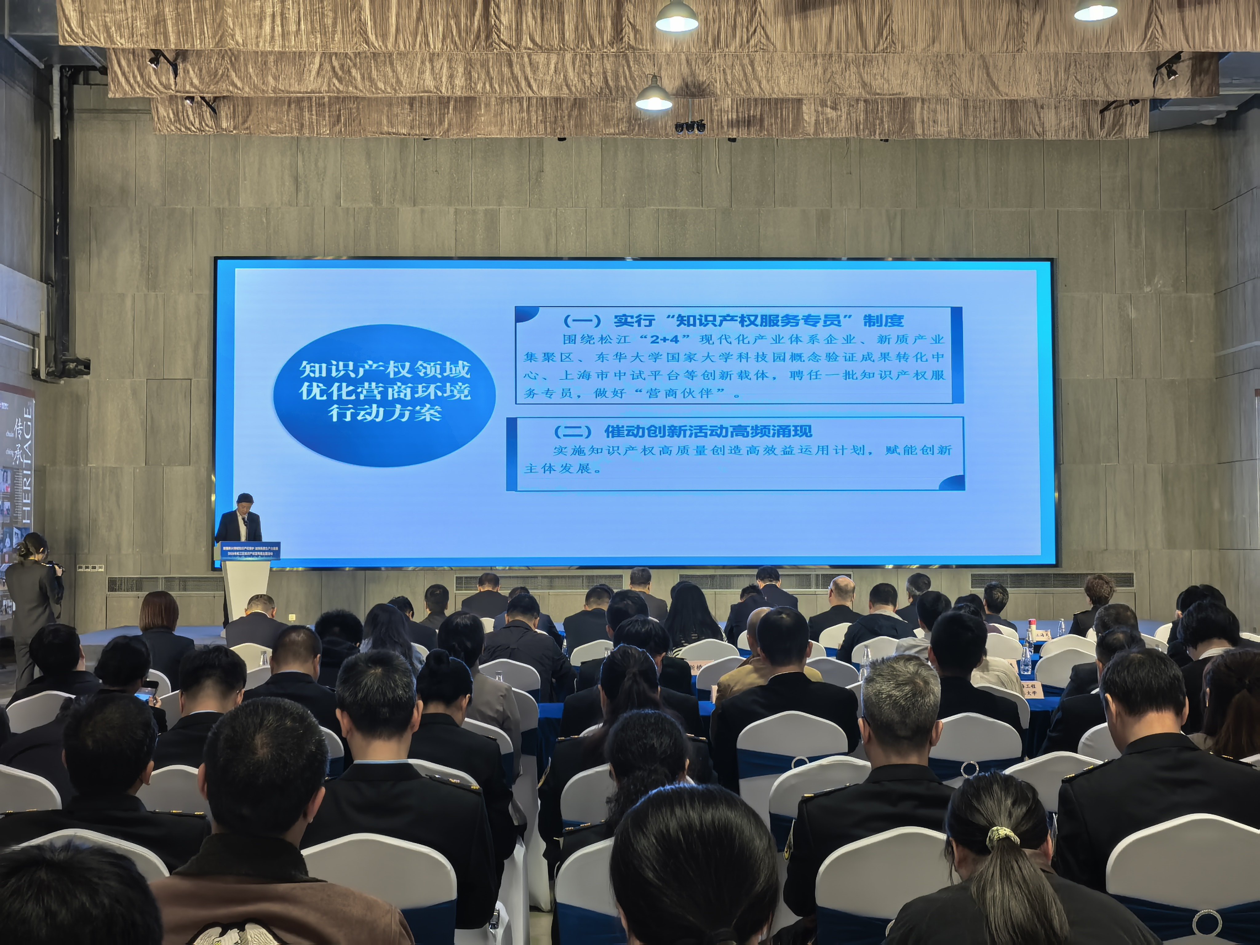 活动现场,松江区市场监管局(知识产权局)正式发布了《关于实施“精准供给服务 澎湃创新动能”松江区知识产权领域优化营商环境的行动方案》。该方案立足松江实际,聚焦创新主体需求,致力于以更优的知识产权生态助力新质生产力发展。