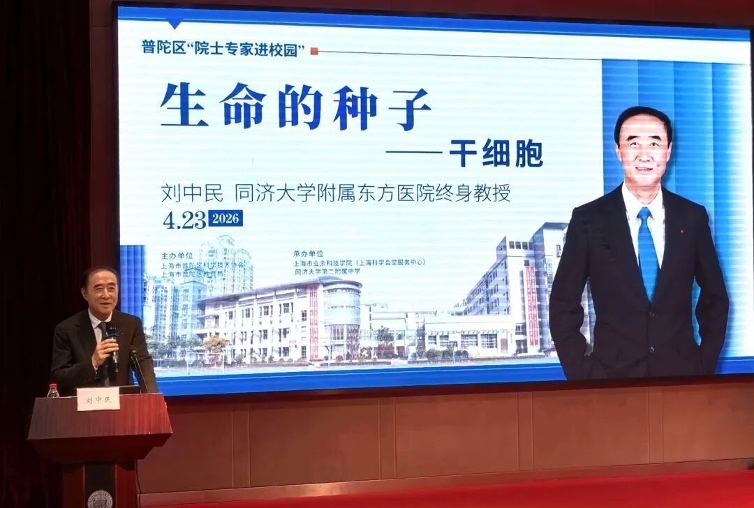 “干细胞是生命的种子,大家是社会的种子,是祖国的栋梁之材。”4月23日下午,普陀区“院士专家进校园”活动在同济大学第二附属中学举行。俄罗斯工程院外籍院士、上海干细胞临床转化研究院院长刘中民亲临校园,以《生命的种子——干细胞》为主题,为师生带来一场兼具科学深度与成长启发的生命科学科普课。 本次活动由普陀区科学技术协会、区教育局联合主办,上海市业余科技学院(上海科学会堂服务中心)与同济大学第二附属中学共同承办。 普陀区“专家院士进校园”活动 “我在培养干细胞,大家在培养自己,道理是一样的。”讲座一开场,刘中民院士便以一个生动的比喻拉近与同学们的距离。“干细胞就像一颗种子,向上抽枝发芽,向下生根发展,包含无限可能。”刘院士从“什么是干细胞”“干细胞如何发挥作用”讲起,围绕疾病治疗、器官修复、延缓衰老等话题,借助临床案例和前沿研究,将原本高深的生命科学知识讲得通俗生动,帮助学生们打开认识生命科学前沿的新窗口。 作为中国首例心肺联合移植手术的主要完成者,他讲述了自己从专精心脏外科治疗转向探索干细胞疗法的心路历程:“解决问题的工具不止一种,从心脏手术到干细胞疗法,我一直在找更好的答案,力求不断优化治疗方案,让患者获得最大益处。”刘院士鼓励同学们始终保持好奇心和探索欲,在学习中不断拓宽视野、寻找更多解决问题的可能。一句句饱含专业温度与医者情怀的讲述,引发现场阵阵掌声。 刘院士正在授课 互动提问环节将现场气氛推向高潮。围绕人体是否可能实现抗衰老与再生、哪些因素制约干细胞延缓衰老进程、脐带干细胞是否存在遗传风险、如何维持干细胞自我更新等问题,同学们踊跃举手、争相发问。刘院士逐一耐心回应,思维碰撞之间,大家对科学的热爱与对未知的好奇被进一步点燃。 学生踊跃提问 “细胞疗法是第三场医疗革命。”刘院士介绍,当前医学正朝着干细胞的外源补充和内源激活等方向持续攻关。他寄语学子:“期待你们投身这一领域,挖掘干细胞的潜能。”畅想未来,他坚信,随着新生代前赴后继的努力,技术终将实现突破,人类的平均寿命和幸福感将不断提高。院士的话语把“生命的种子”播进学子们的青春心田。“希望我们同学带着这份热爱与好奇,在科学探索的道路上不断探索、勇于实践。”主持人说道。 活动尾声,学生代表向刘院士献上鲜花,掌声久久回荡在会场。这堂关于“生命的种子”的大师课,不仅是一场走近前沿科技的知识洗礼,更是一堂厚植科学梦想、涵养创新志向的成长课。未来,普陀区将持续做强“院士专家进校园”科普品牌,联动更多优质资源,让大师课堂常态化走进校园,引导青少年感受科学魅力、点燃报国志向,为培育新时代科创人才夯实基础。 记者:曾杰 编辑:吴锴