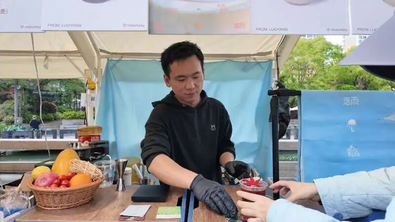 如果说专业是基础,那么创意,就是这场咖啡节里不断冒出来的新花样。在烟雨咖啡的摊位前,不少顾客被一款带着清新香气的特调吸引驻足——木姜子的独特气息混合着果香,在空气里若隐若现,对不少人来说,这样的搭配颇有新意。