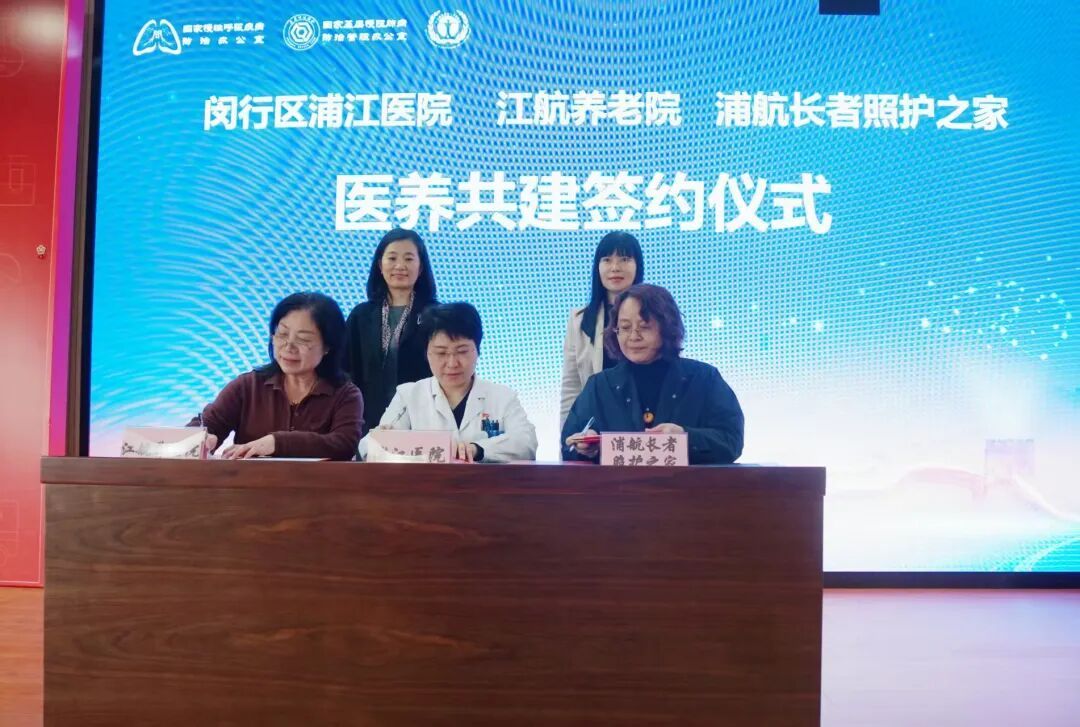 当天,闵行区浦江医院分别与江航养老院、浦江社区浦航长者照护之家签订《养老和医疗床位转介合作协议》,正式打通医疗床位与养老床位双向转介绿色通道。