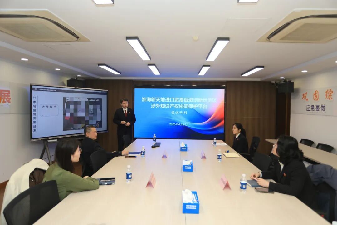 淮海中路街道综治中心作为前期试运行的平台枢纽,第一时间启动线索分流与联合响应机制:市场监管部门迅速固定现场证据,公安经侦力量精准锁定上游供货渠道,检察机关同步介入引导取证固证,法院就侵权认定与赔偿标准提供司法预判。各方联动下,仅用一个月便查获假冒品牌文创产品千余件,并对主要侵权人依法采取行政与刑事衔接措施。该案的高效办结,成为示范区涉外知识产权协同保护平台实战化运行的生动样本,也直接推动了《工作方案》的系统化出台。