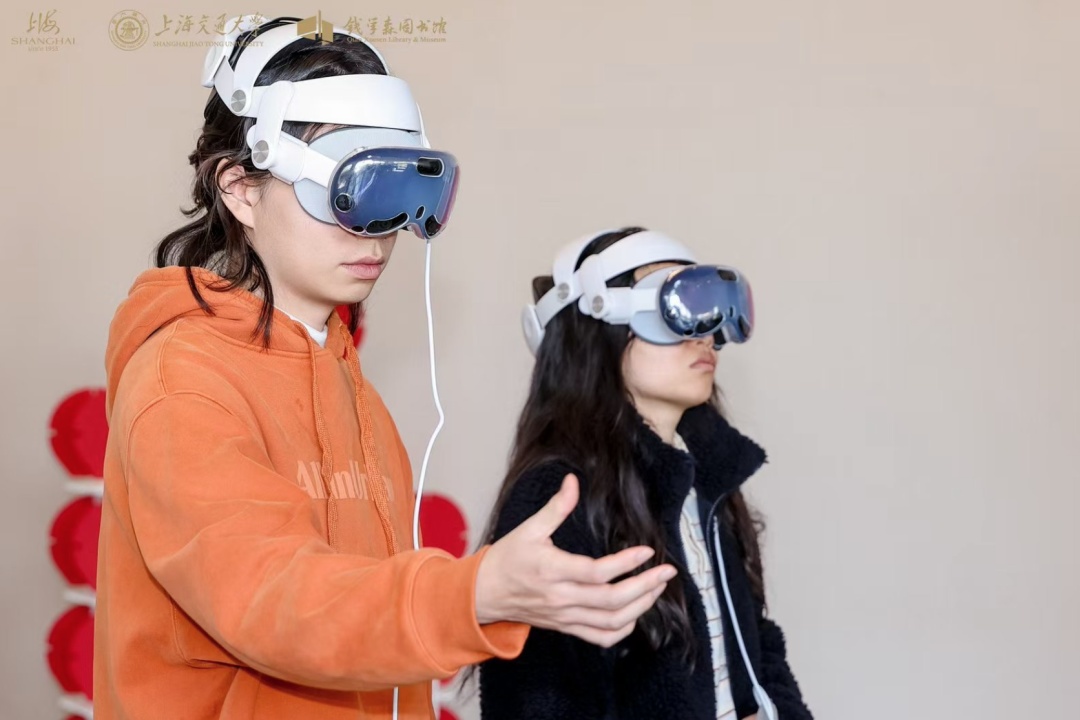 在一楼展厅,观众佩戴MR眼镜即可“穿越”回百年前交大课堂,沉浸式感受青年钱学森勤奋治学、科学救国的初心。项目团队成员、上海交大学生何礼有瑜介绍道:“我们的MR设备支持300°到900°近视镜片磁吸安装,让近视观众体验时不受影响。”他还透露,后续将拓展更多互动场景:“我们会在第一展厅和导弹模型交互,甚至可以看到东方二号导弹真实发射的样子,观众可以亲手按下发射键,效果非常震撼。”