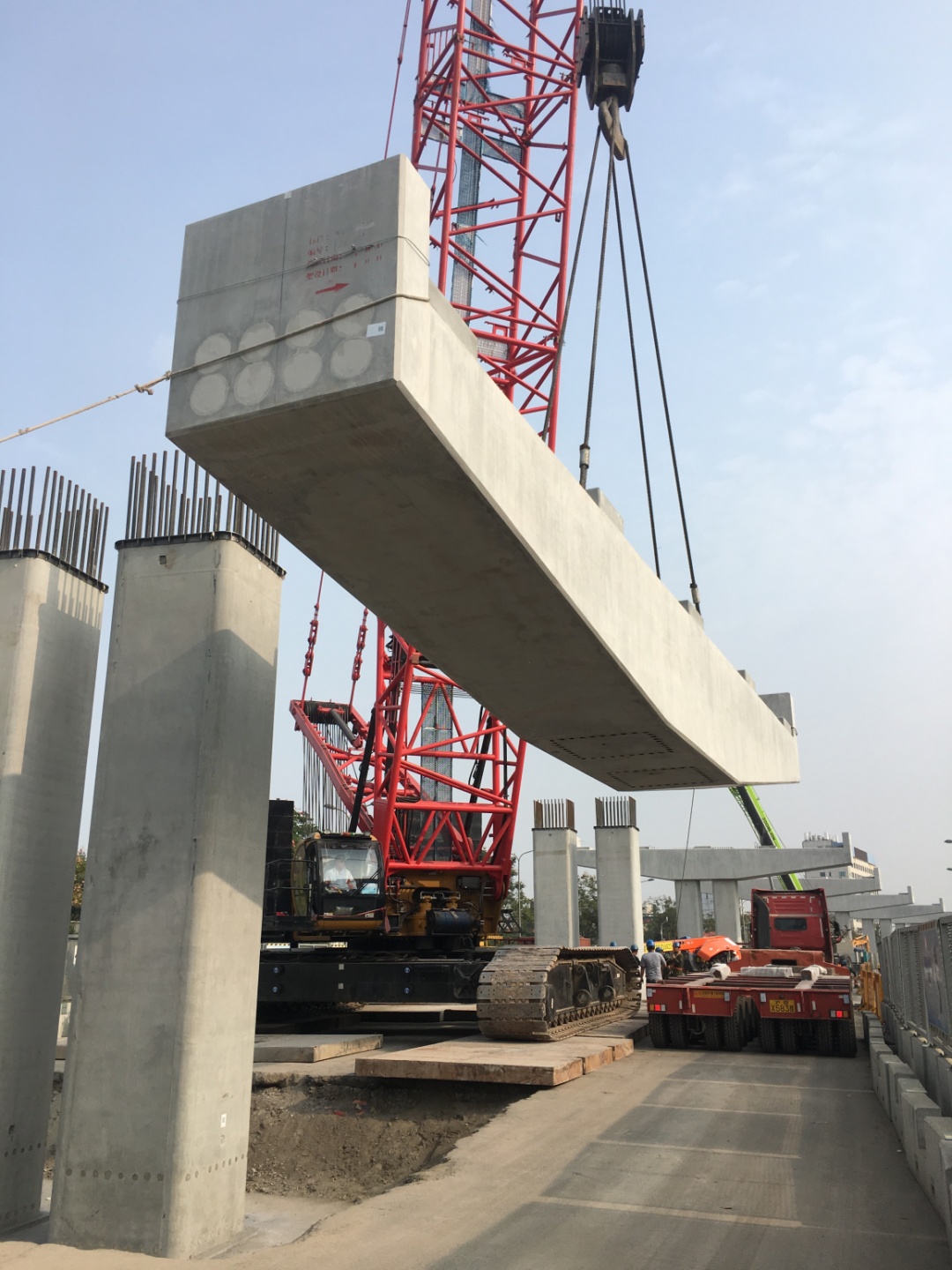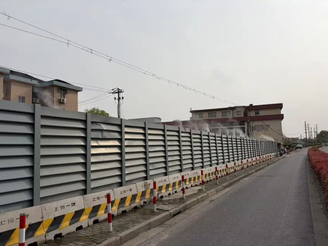 记者在现场看到,施工全线安装了高标准围挡并配套喷雾系统,实现全时段雾化降尘,从源头遏制粉尘扩散,同时建立常态化洒水雾炮一体化抑尘机制,非降雨天气每日定时开展洒水与雾炮作业,有效抑制道路扬尘,后续还计划在重要交叉路口设置绿篱围挡,在吸尘抑尘的同时提升环境颜值。 现场立柱、盖梁吊装