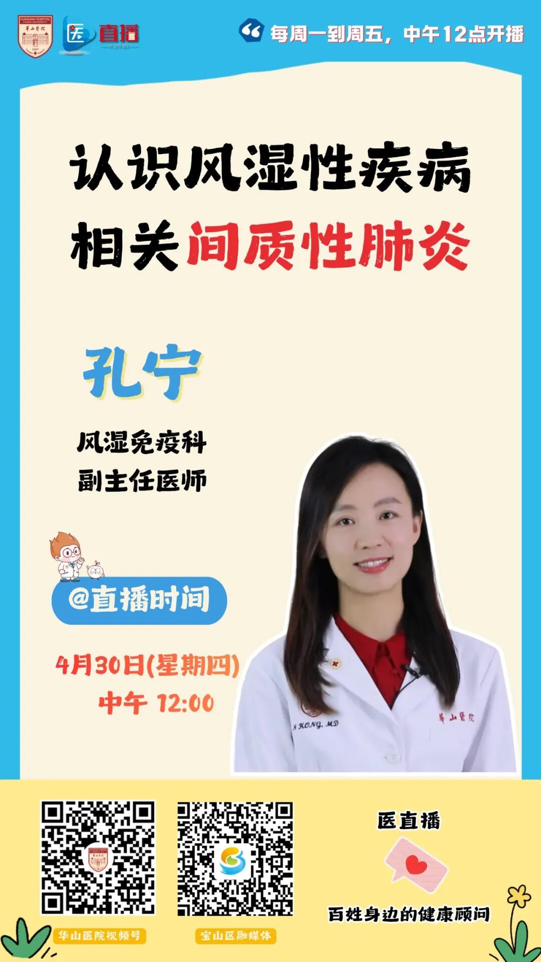 “明明没有感冒,为什么莫名干咳、胸闷、活动后气喘?”肺里出现的间质性炎症和纤维化,到底是什么原因?该怎么办?本期医直播,复旦大学附属华山医院风湿免疫科副主任医师孔宁,将带大家一起认识风湿性疾病相关的间质性肺炎,解答您的疑惑。