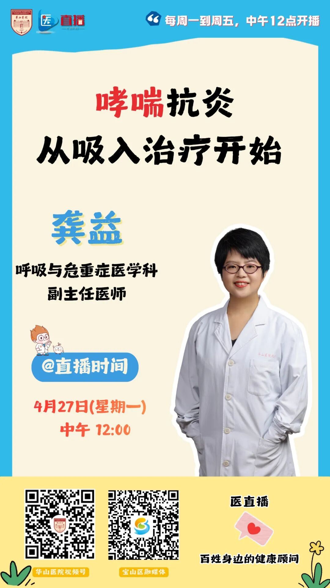 哮喘的本质是气道的慢性炎症。很多患者只在意“喘”发作时的缓解,却忽视了日常“消炎”的重要性。本期医直播,复旦大学附属华山医院呼吸与危重症医学科副主任医师龚益,将为您揭开哮喘抗炎吸入疗法的核心秘密,帮助您理解为什么每一位哮喘患者,无论病情轻重,都必须将抗炎治疗作为日常管理的基石。同时纠正“激素恐惧”等常见误区,教您如何规律、正确地使用抗炎吸入剂。