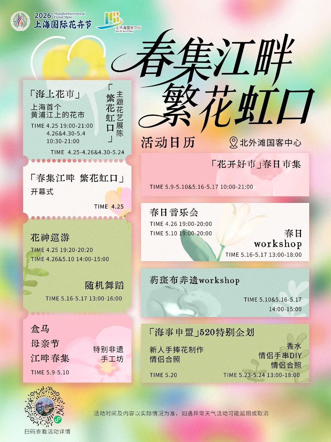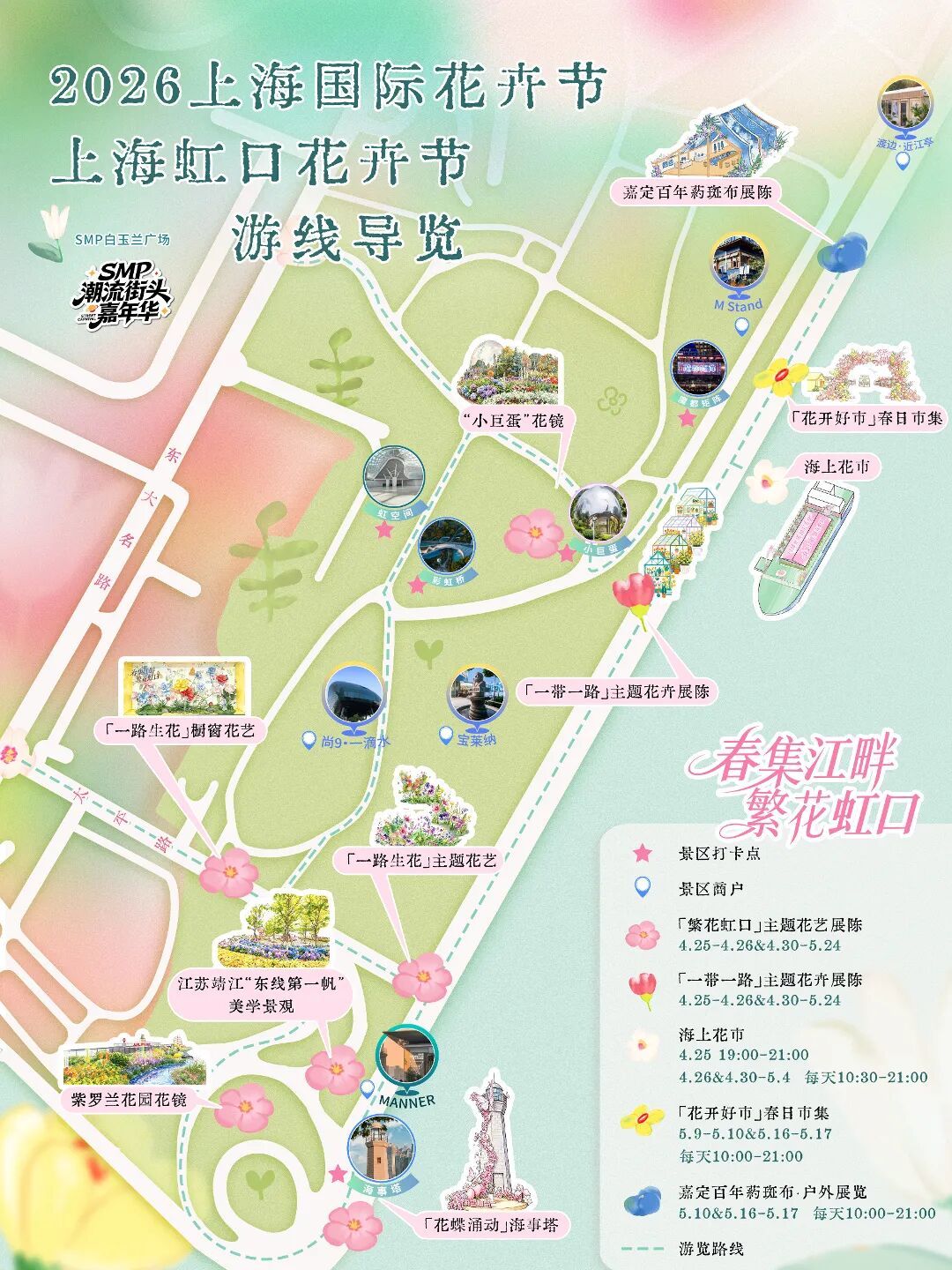 虹口花卉节期间,花神巡游、音乐会、随机舞蹈等多场主题演出活动将轮番上演,还有母亲节、520特别活动等你解锁。
