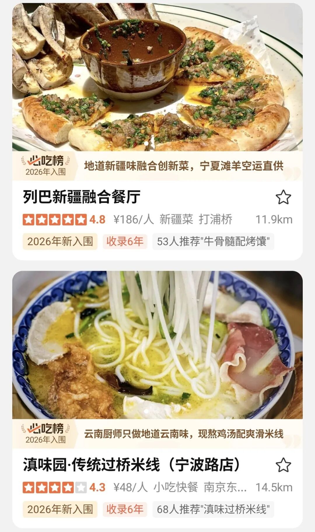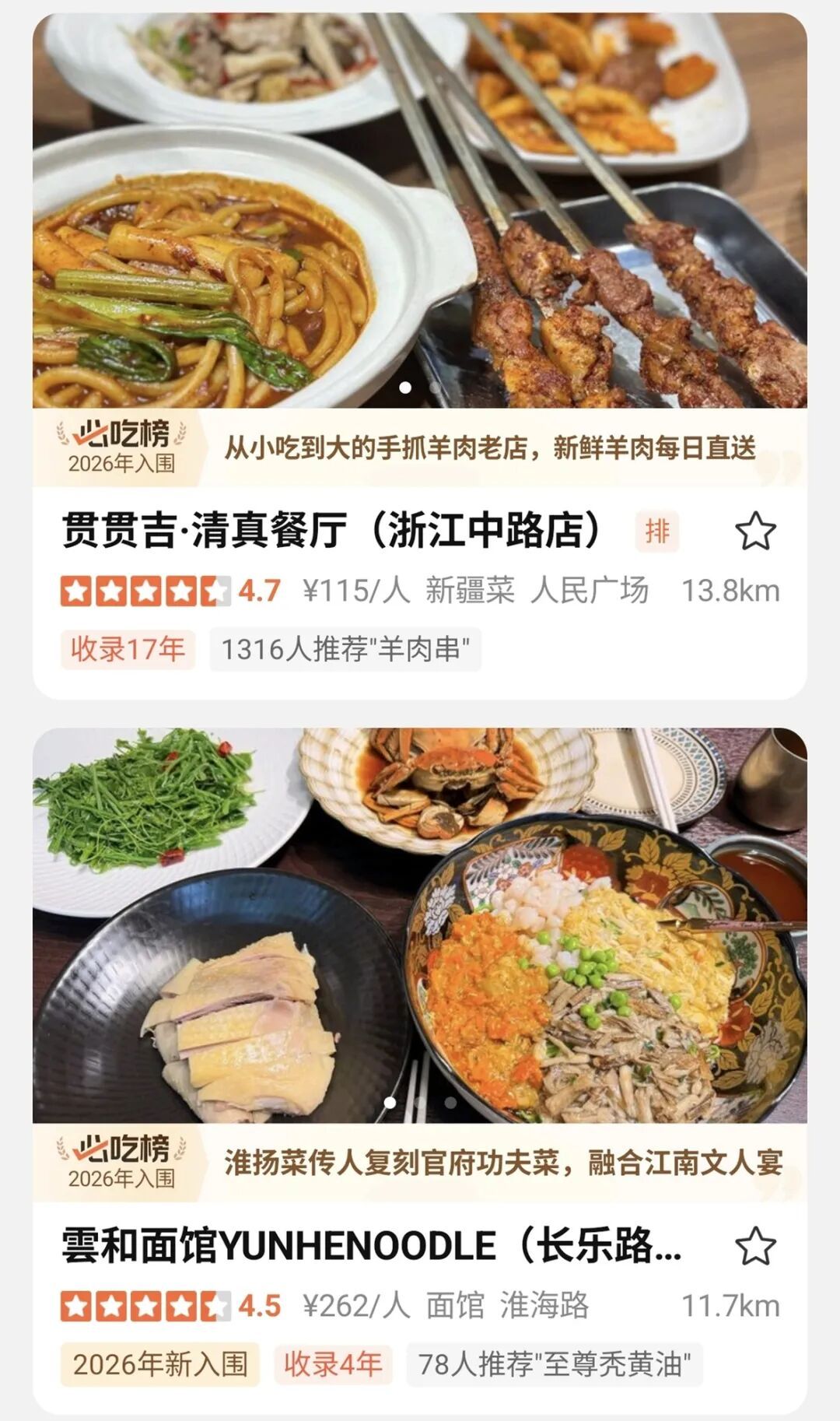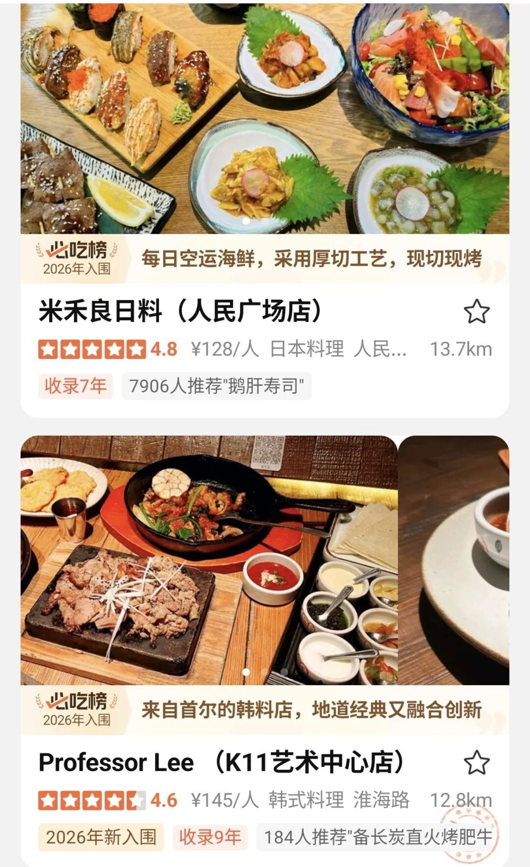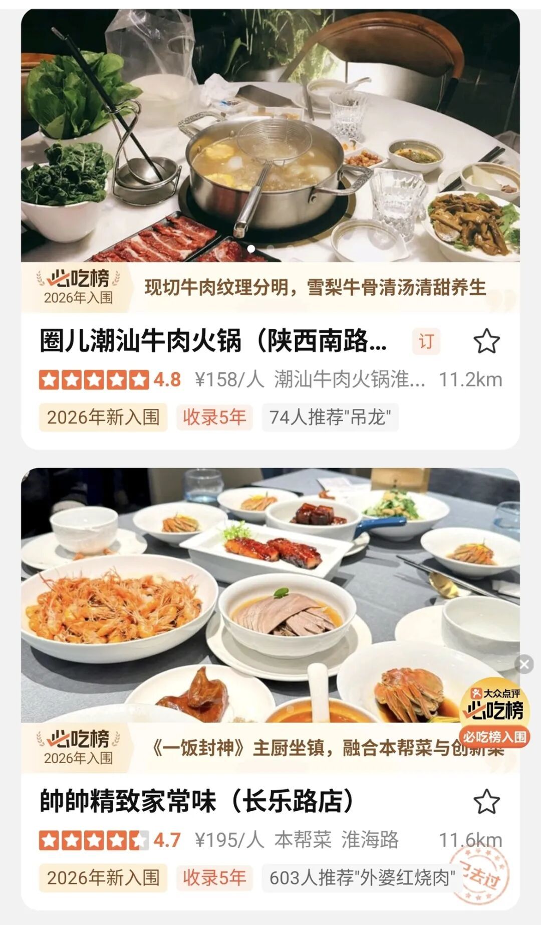 近日,2026大众点评“必吃榜”揭晓入围名单