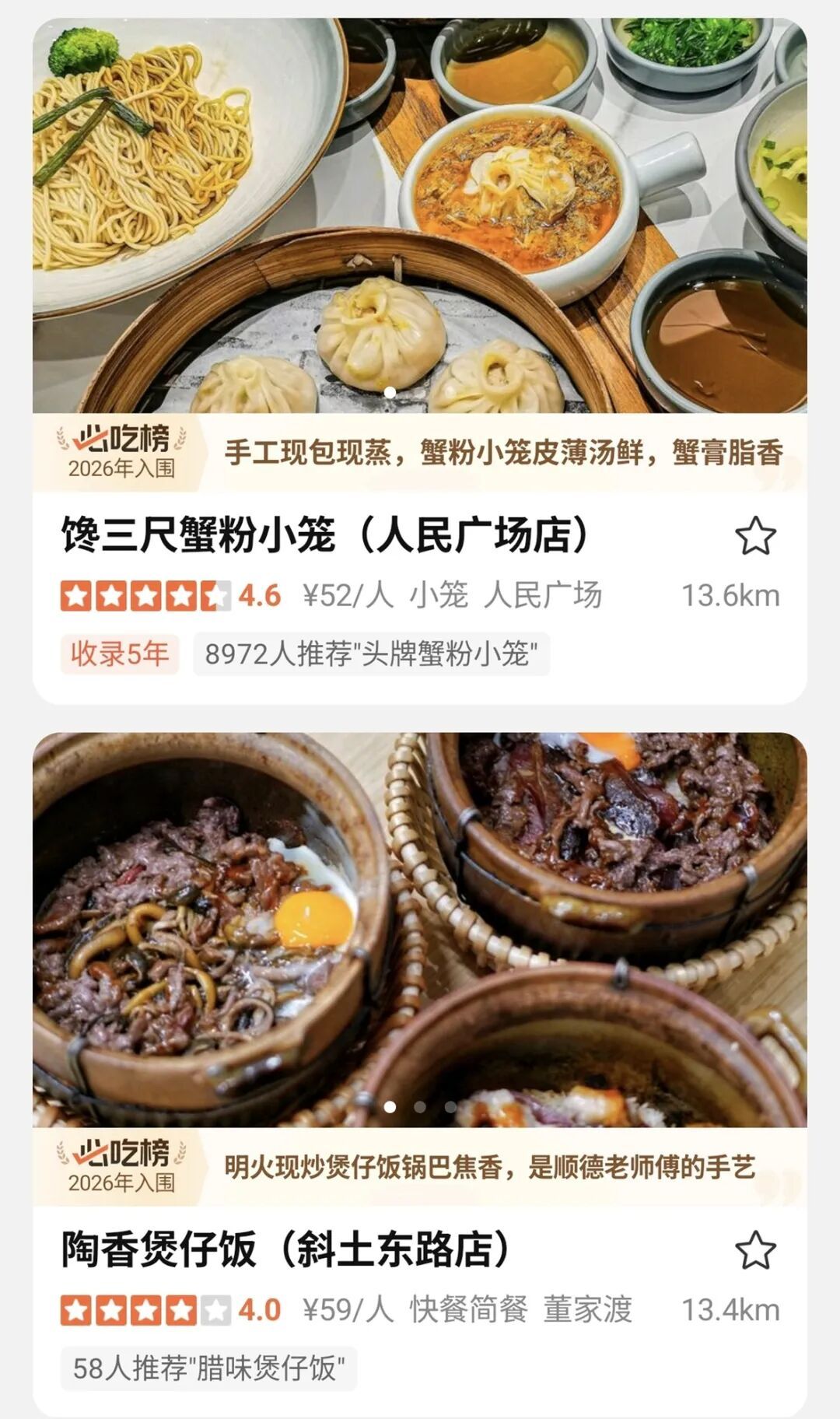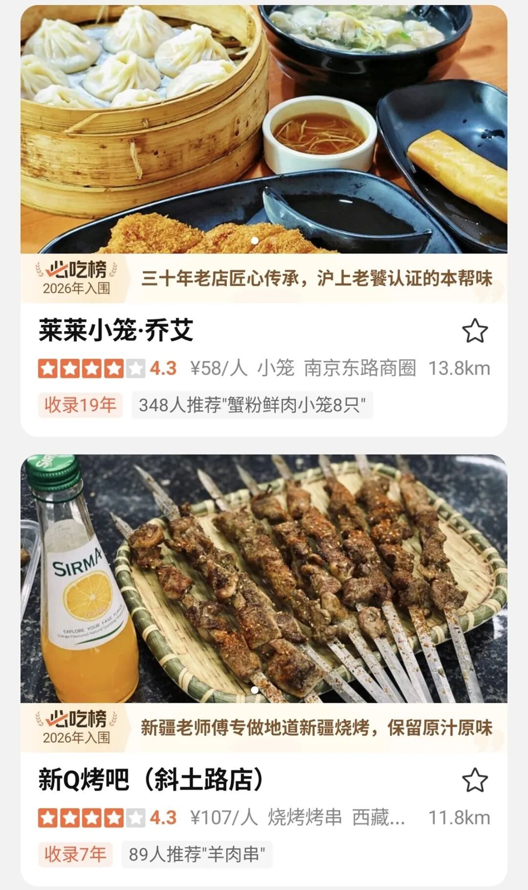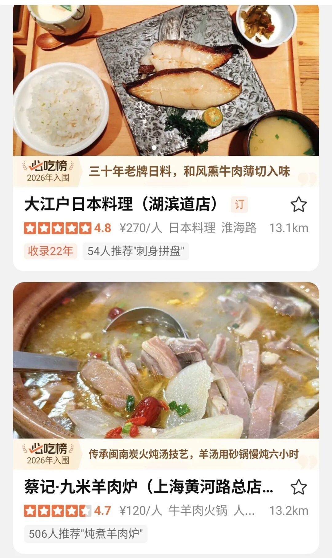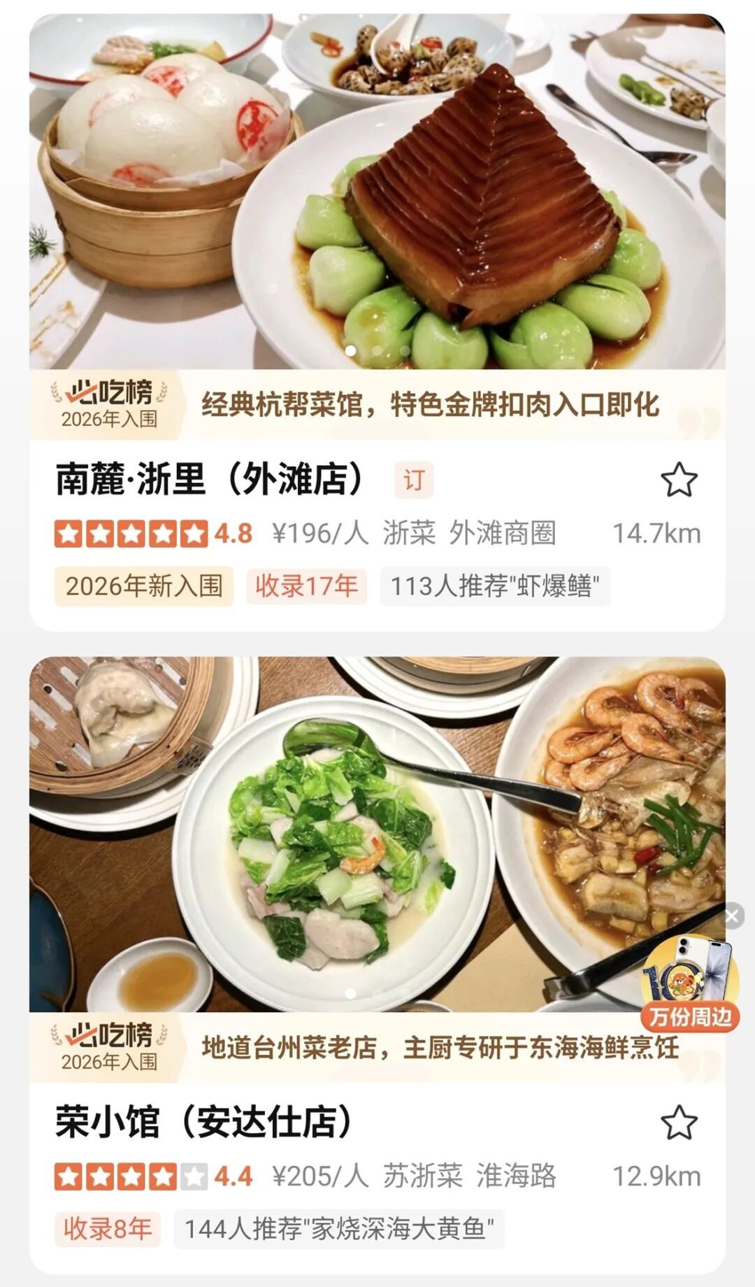近日,2026大众点评“必吃榜”揭晓入围名单