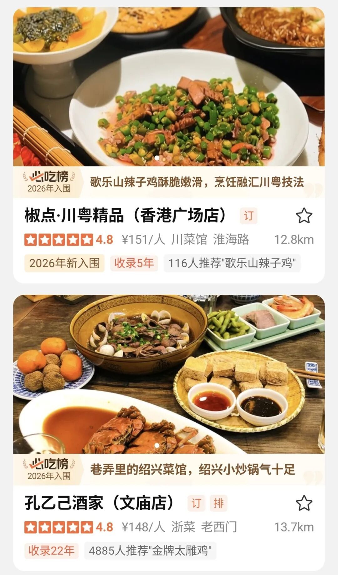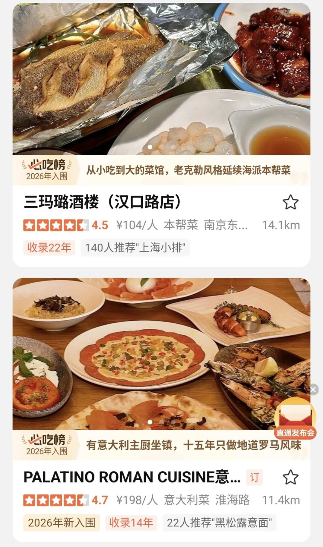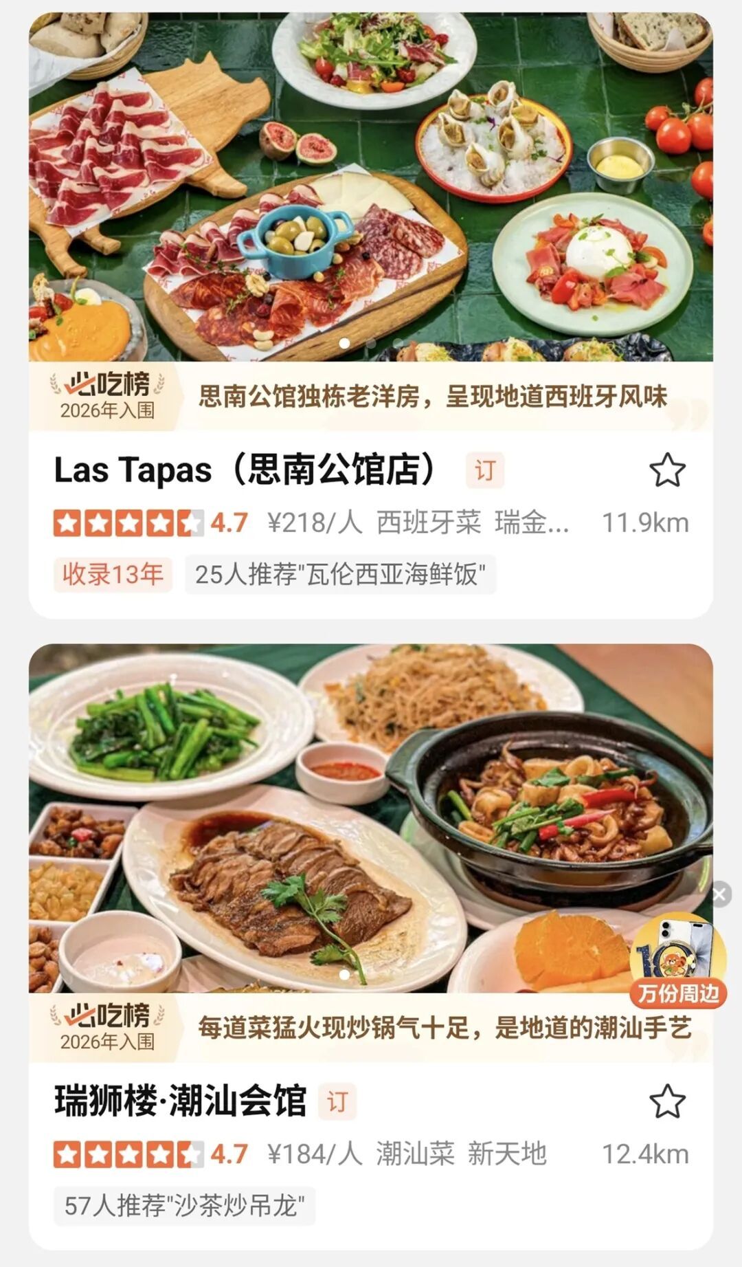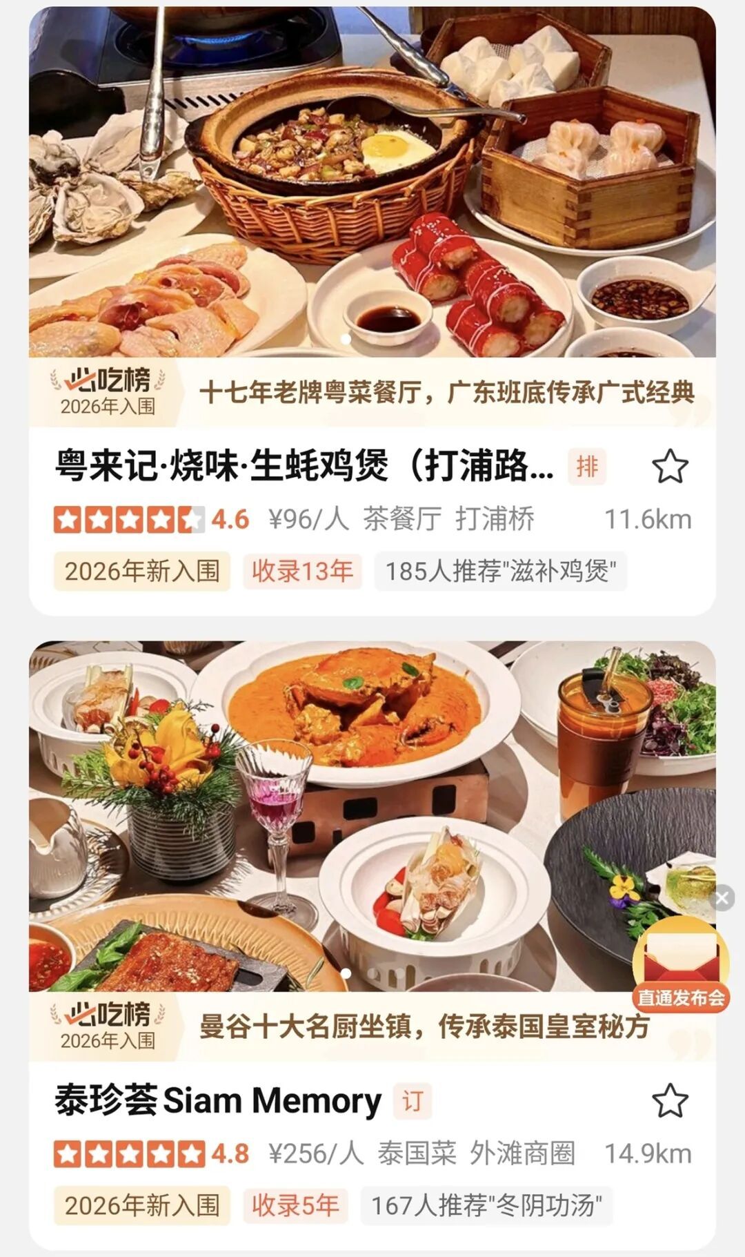 近日,2026大众点评“必吃榜”揭晓入围名单