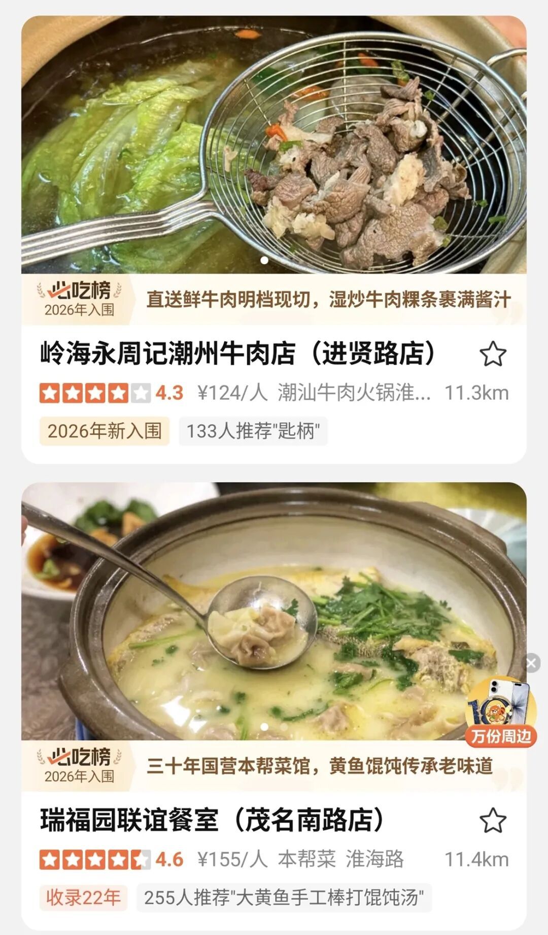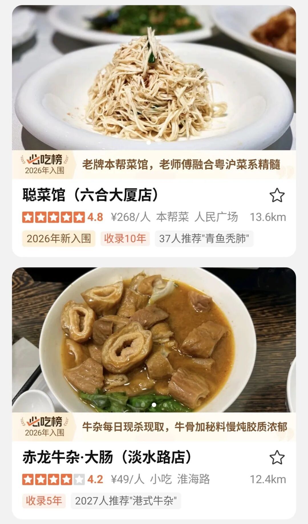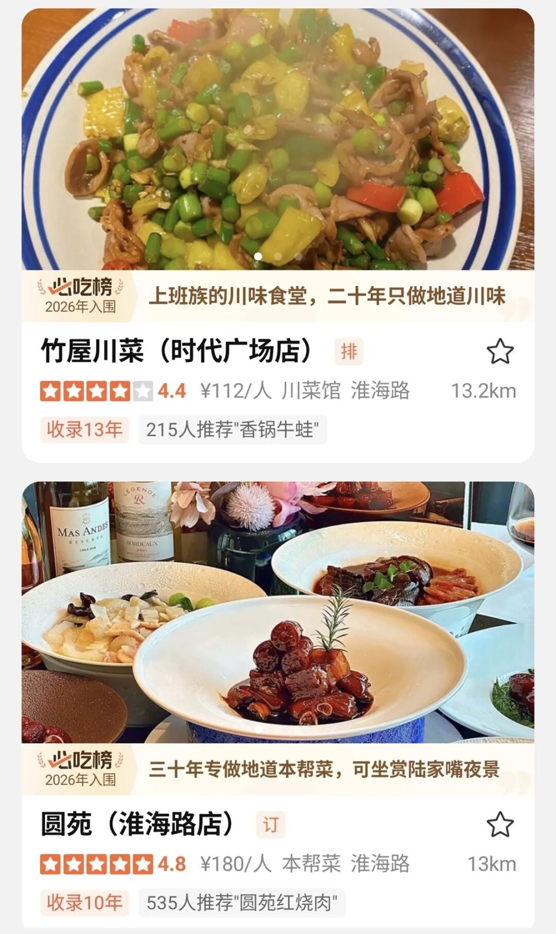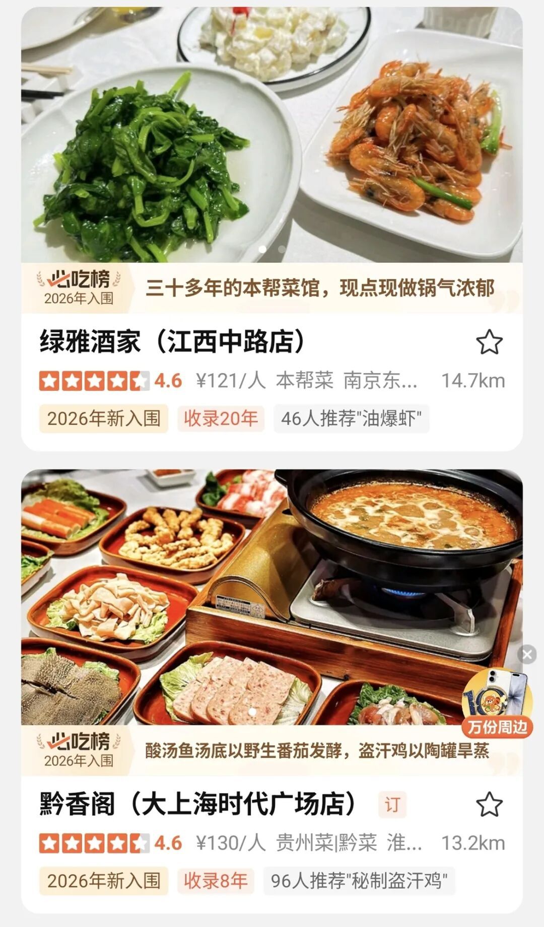 近日,2026大众点评“必吃榜”揭晓入围名单
