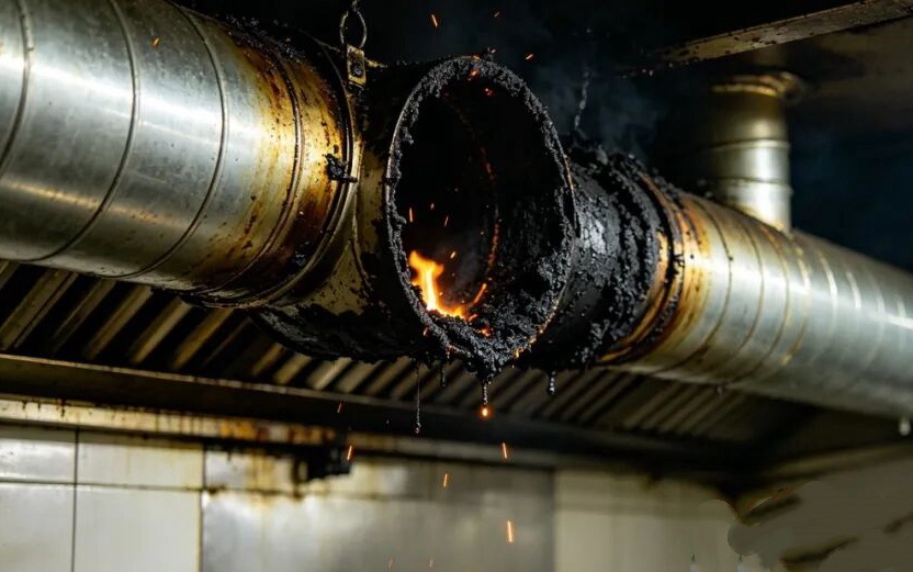 近年来,全国各地发生多起因油烟管道未及时清洗引发的火灾。2026年3月10日,浙江衢州一饭店后厨,工作人员熬制油脂时,明火不慎被吸入风道,瞬间引燃油烟管道。火焰顺着风道快速蔓延,迅速引燃吊顶、排烟设备及周边可燃物,后厨区域过火严重。 2025年11月26日,贵州贵阳市一家烧烤店炭火火星飘入长期未清洗的油烟管道,因管道内油污堆积过多,火星迅速引燃油烟管道,并蔓延至附近储物间引起火灾。 2025年1月3日,北京市丰台区成寿寺小学发生火情,过火面积1平方米,无人员伤亡。起火原因系食堂做饭时油锅起火,引燃油烟管道内的油垢。 油烟管道为何成火灾“帮凶”?