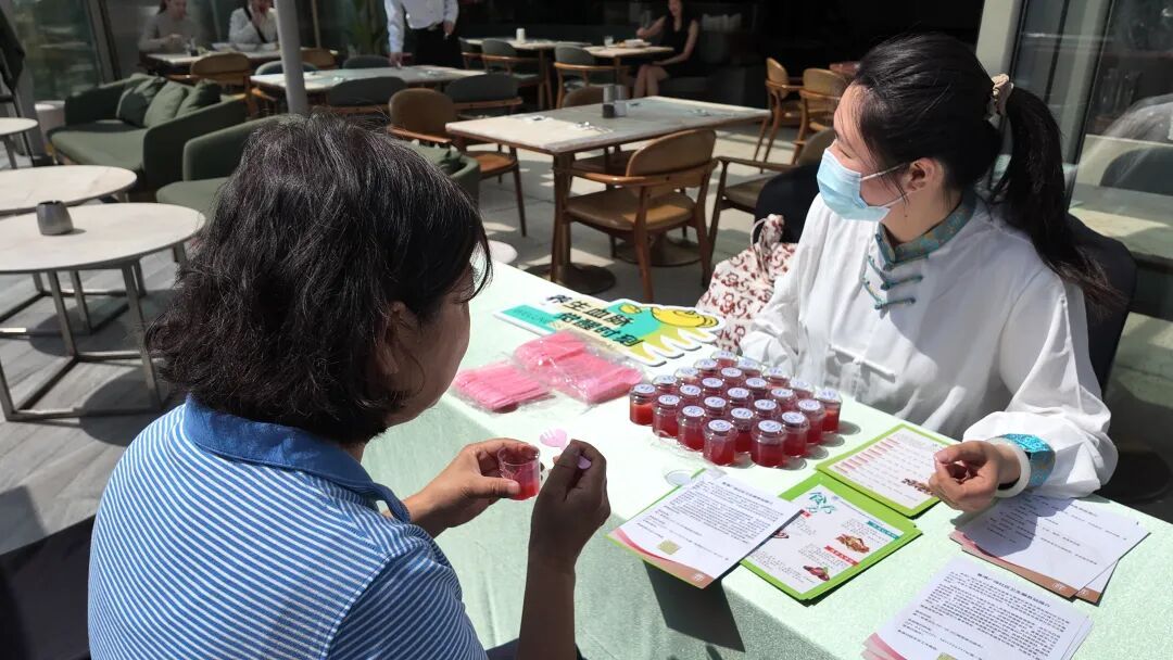 此外,香囊手作DIY环节传承了中医香囊养生古法。嘉宾们亲手填充草本香料,制作专属养生香囊,在动手的过程中感受中医文化的博大精深。同时,淮海中路街道社区卫生服务中心“淮食记”科普品牌创新推出的中医药食同源成果“榴梨冻”也备受青睐。这款清甜润养的美食契合中医食养理念,让养生融入舌尖滋味,为嘉宾们带来了一场味蕾与健康的双重享受。