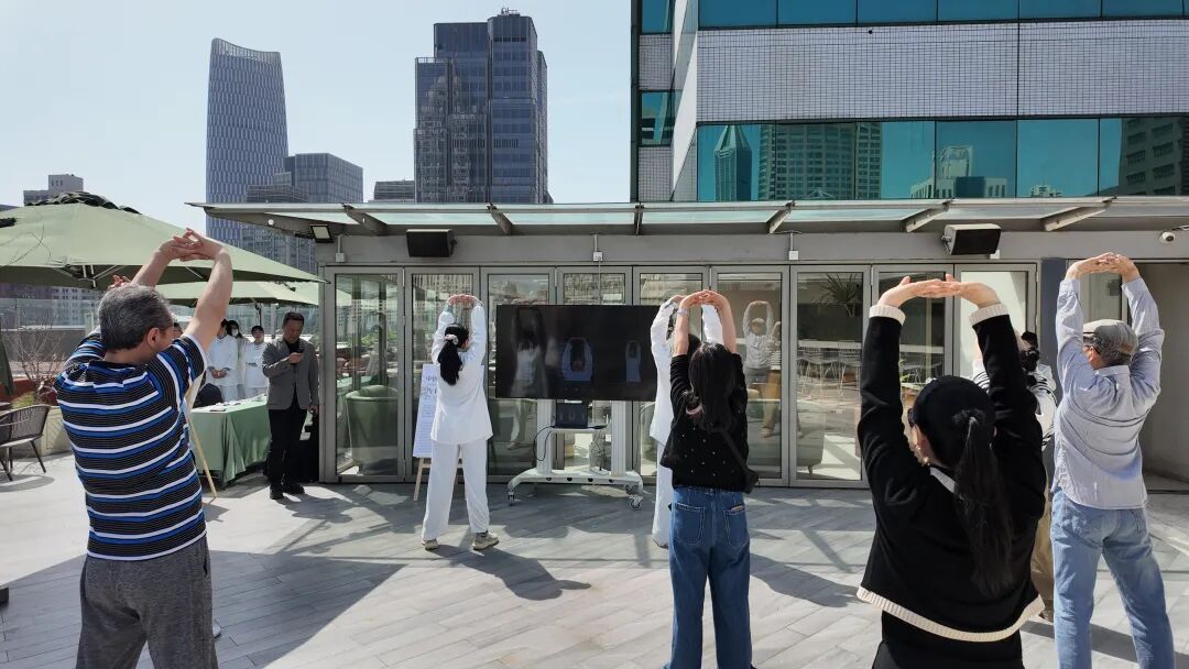 活动邀请中医科主任带来八段锦教学体验。八段锦作为中医传统养生功法,动作舒缓、理气通脉,十分适合日常调养。宾客们跟随指导,舒展身形,吐纳调息,在一招一式中疏通经络、调和气血,感受着古法养生带来的舒缓与治愈。一位参与体验的住户兴奋地说:“平时工作忙,很少有机会能这样系统地学习养生功法。八段锦动作简单易学,做完之后感觉浑身都轻松了,以后我会坚持练习。”