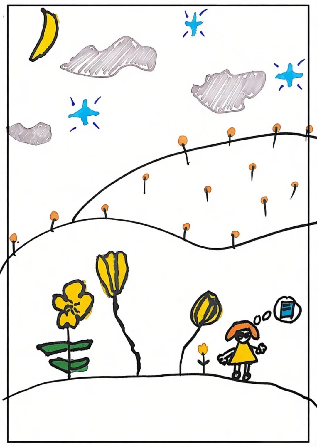 简介:小作者最近很喜欢看的一本书叫《万物的童话》,里面的小花会聊天,小树会做梦,连小蚂蚁都会唱歌!就像小作者最好的朋友一样超级好玩!所以这幅画就应运而生。