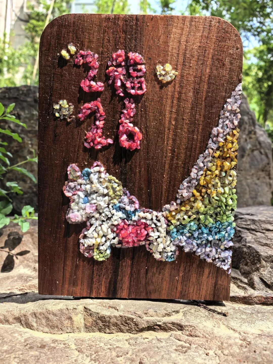简介:这件作品以木质书立为载体,运用非遗螺钿工艺,将漂亮的贝壳片镶嵌出彩虹小马和2026字样,把传统非遗技艺与日常学习用品结合起来,既传递文化内涵,又兼具实用功能,让非遗之美融入日常。