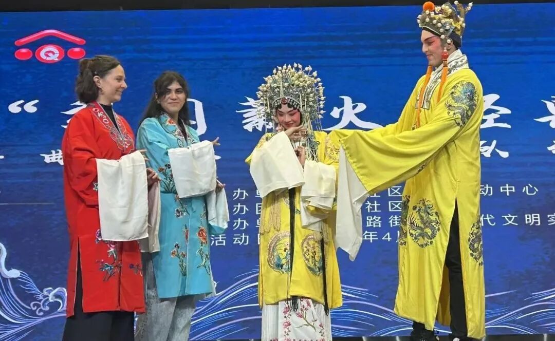 这场跨越国界的互动,不仅让留学生从“看客”变为“参与者”,也让社区京剧队的队员们感受到:传统艺术完全可以“圈粉”年轻人、打动外国人。这场演出,既是一次社区文化成果的集中展示,也是一次“社区+高校”联动模式的生动实践。曲阳社区以京剧为媒,既丰富了居民的精神文化生活,又搭建起中外文化交流的桥梁,延续了社区此前国际文化交流的特色,营造出开放包容的社区氛围。