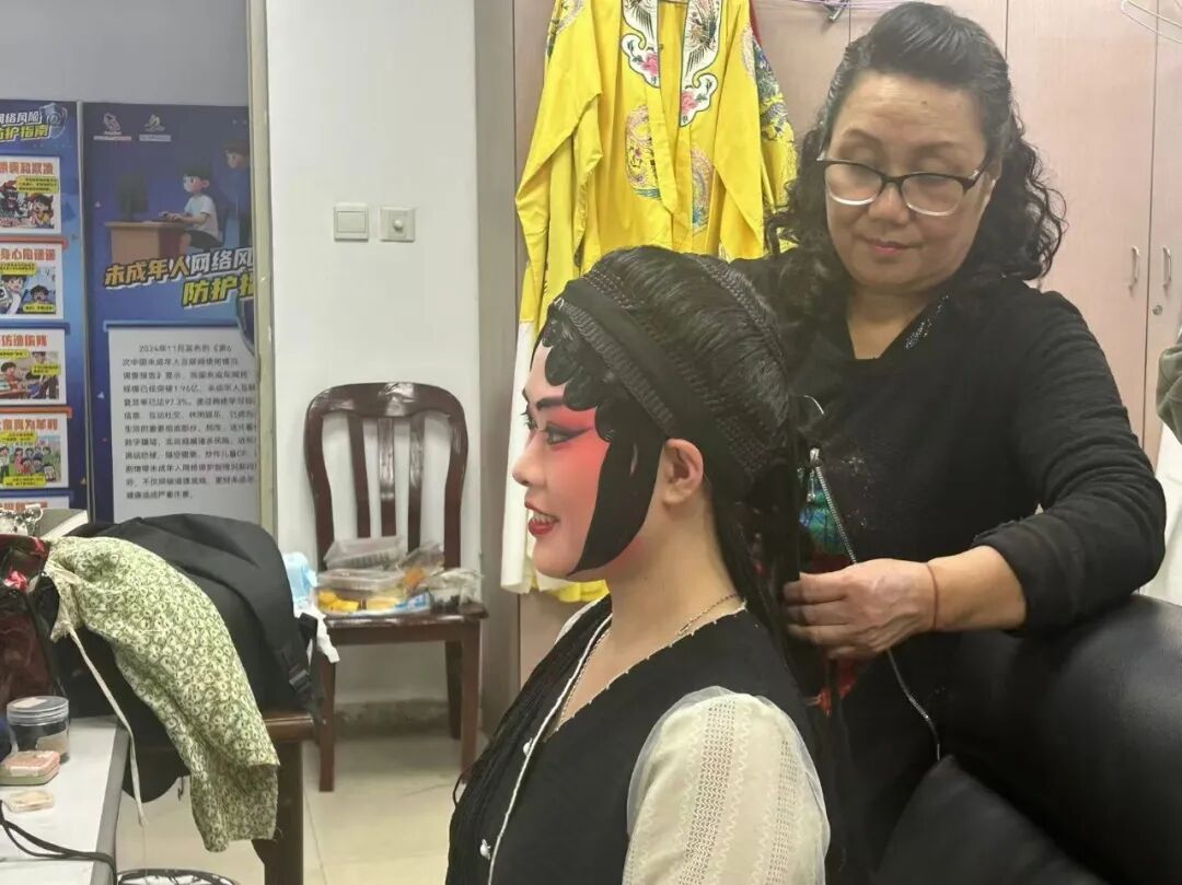 化妆间里,来自京剧院的专业化妆老师为他们细细描画眉眼、穿戴行头。看着镜中渐渐“变身”的自己,留学生们兴奋不已,用中文互相交流着感受。当大家夸赞他们“中文说得很好”时,智胜连忙摆手笑答:“不不不,没有你们说得好!”话音刚落,化妆间里笑声一片。从面部勾勒到头面佩戴,从服装试穿到角色理解,在专业老师的指导下,他们零距离感受着京剧艺术的精致与考究。“舞台上的老师都太厉害了,扮装好漂亮,他们一口气能唱好久。”艳琼由衷地感叹。