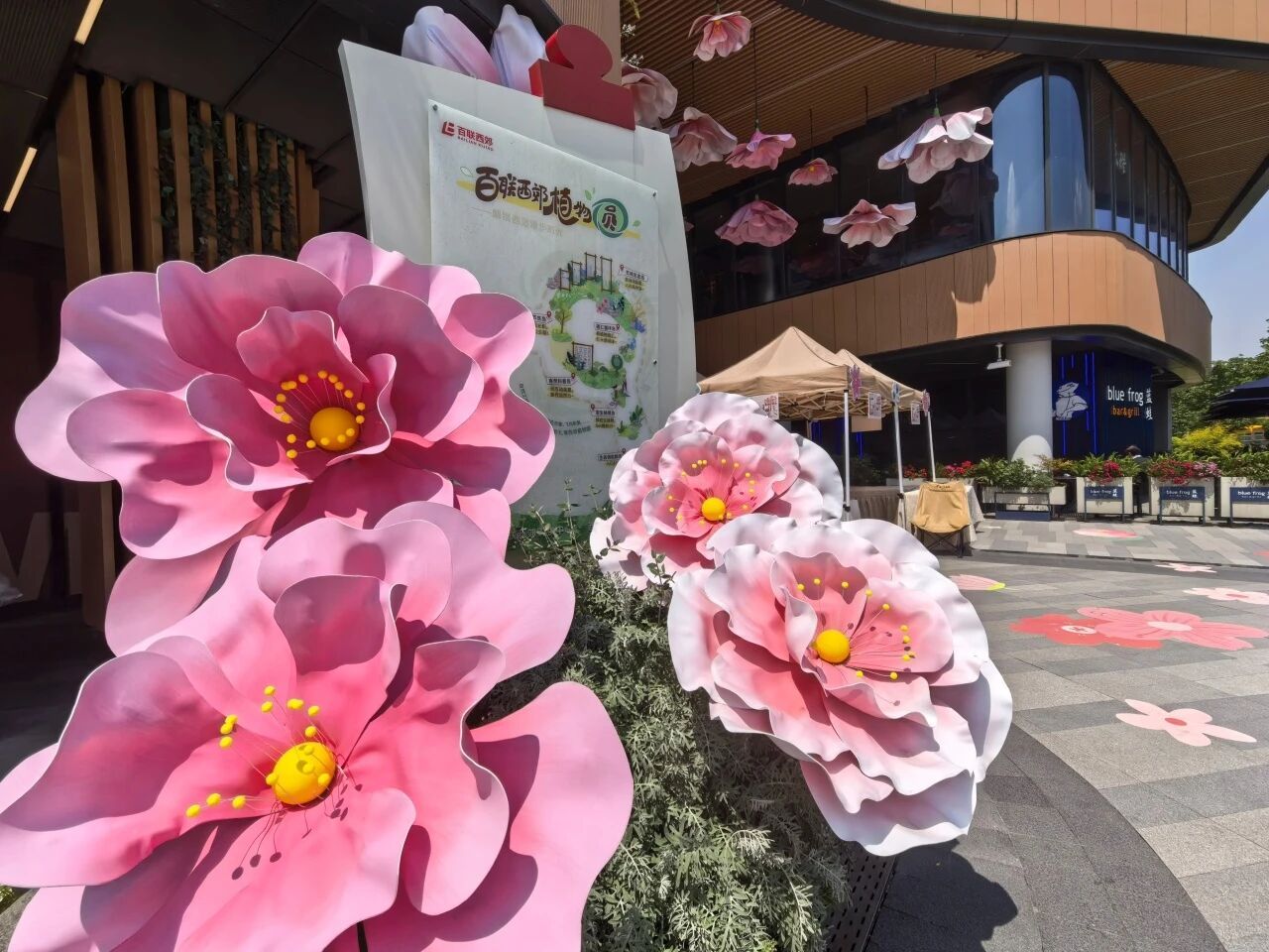 本次“百花节”与百联西郊打造的IP蓝图和特色社群同步联动。活动期间,主题美陈与“百联西郊植物圆”相互交织,大家在赏景的同时也能学习了解自然科普知识。前往种子博物馆、自然科普教室,还可近距离探索植物奥秘,体验有趣的植物手作。音乐、运动、宠物、亲子四大社群,也推出了友谊赛、骑行、社交互动等活动。