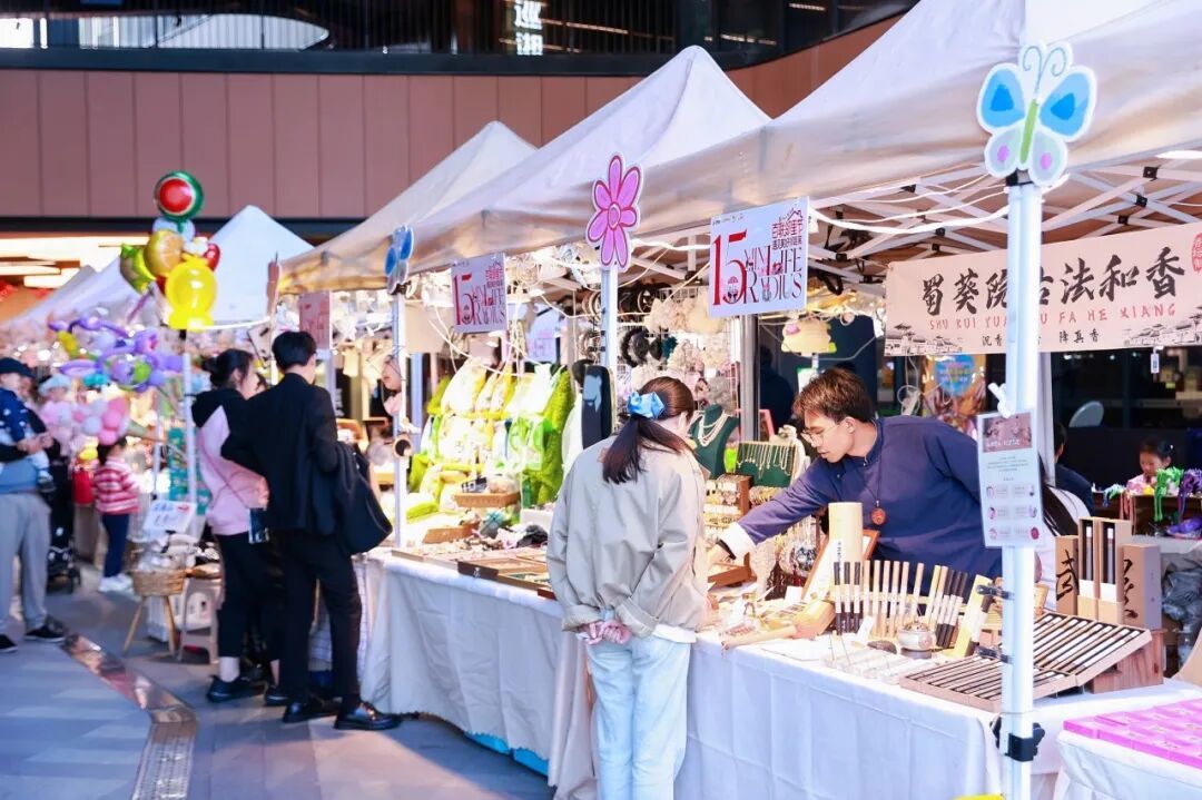 本次“百花节”是百联西郊深度融合文商旅体展的生动实践,贯穿“五一”小长假,将持续至5月10日。活动期间推出的花花市集,汇聚鲜花、手作、文创与轻食等特色摊位,多肉养护、干花香薰等趣味体验吸引诸多亲子家庭和外国游客,大家在逛吃逛玩中尽享春日惬意。